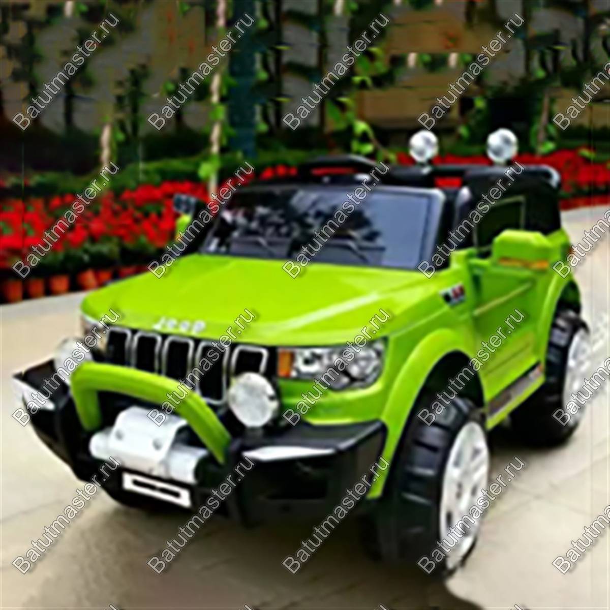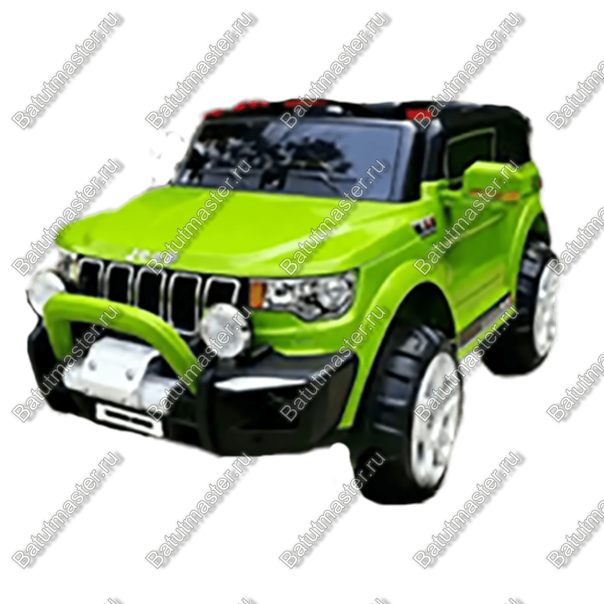 Детский электромобиль «Jeep WRANGLER» в стандартной комплектации выполнен в ярком зеленом цвете, а это гарантия того что он станет самым заметным среди остальных машинок.