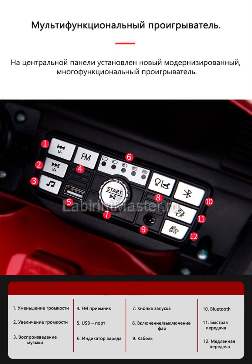 Детский электромобиль Maserati GC-SPORT S302 заводится с кнопки, плавно трогается и благодаря резиновым колесам машинку практически не слышно на дроге. Кроме того они не позволяют развивать тряску от небольших ямок и камней. Максимальная скорость передвижения здесь 7 километров в час. Это позволяет привыкнуть к вождению и не бояться скорости.