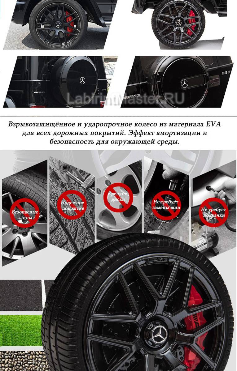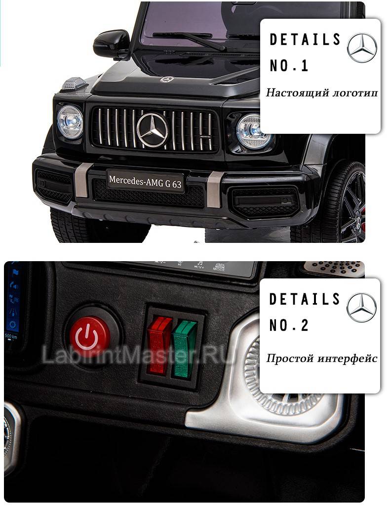 Детский электромобиль Mercedes-Benz AMG-G 63 - премиальная марка электрокара, которая произведет неизгладимое впечатление на мальчишек и девчонок. Он сделан в точности, как настоящий гелик. Даже самым маленьким будет удобно сидеть за рулем в мягком кресле из эко кожи с высоким подголовником. Открывающиеся двери – это еще одна фишка таких машинок, та как попасть внутрь теперь можно легко и безопасно, так как внутри есть защелки-фиксаторы открывания дверей. Яркие диодные фары дают отличную видимость в темноте, что доставляет больше комфорта при вождении.