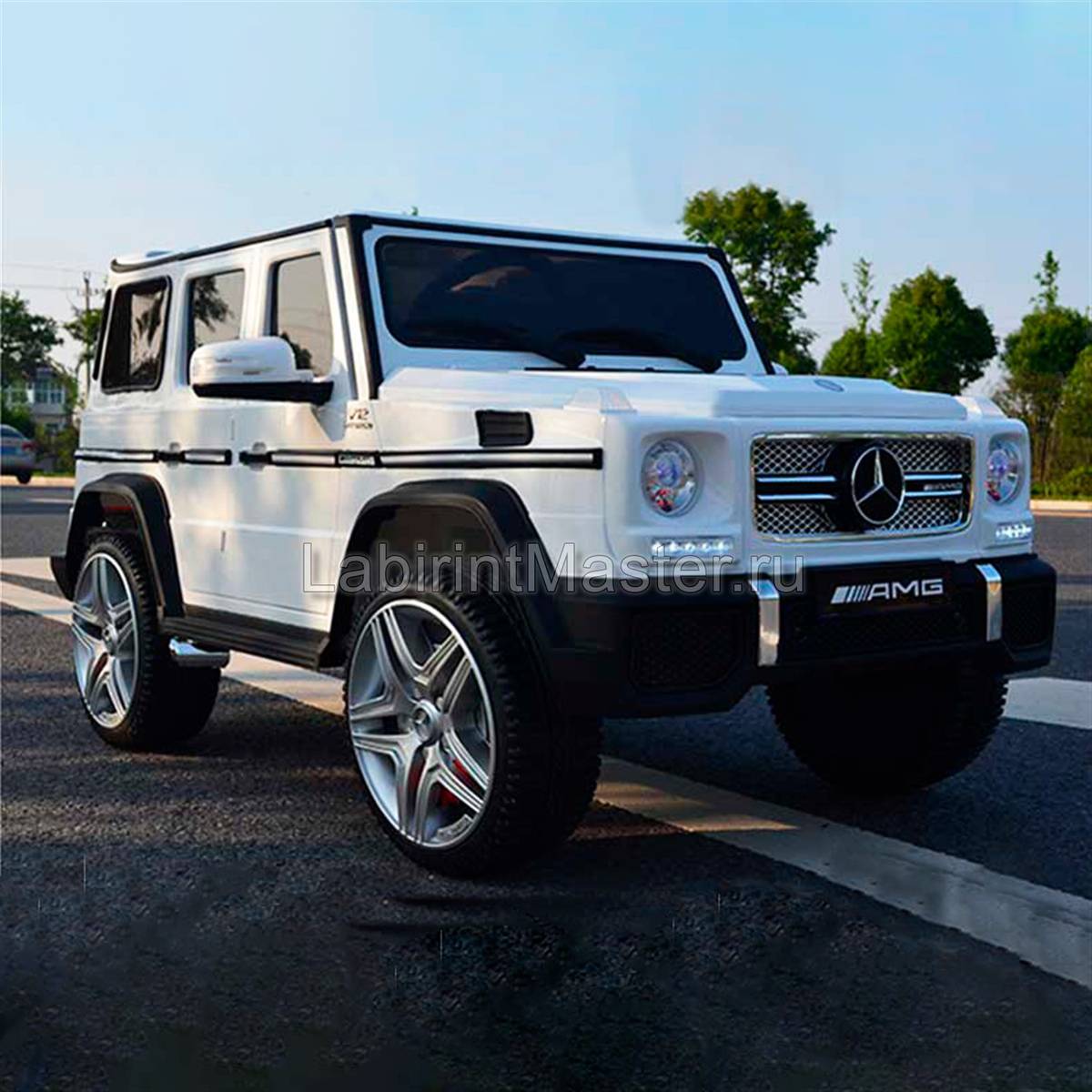 Наверняка каждый ребенок мечтает быть водителем такого стильного, локаничного электромобиля. Здесь каждая деталь выполнена в точном соответствии с реальной моделью. Детский электромобиль «Mercedes-Benz AMG-G 65» сделан в белом цвете и отлично подойдет как девочке, так и юному гонщику. Сразу бросаются в глаза фирменные логотипы и значки, которые расположены на руле, спереди, сзади, в колесах. Широкое сиденье позволяет одновременно кататься двум детям. Так можно играть в водителя и пассажира, что очень нравится детям. Ремень безопасности закрепляет сразу двоих ребят, что является безопасным.