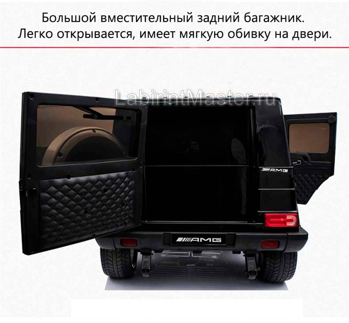 Представленный электромобиль – настоящий покоритель детских сердец! Популярность и признание эта миниатюра Mercedes получила благодаря своему грозному, но и очень привлекательному внешнему виду. Во-первых, детей в первую очередь заинтересует то, что перед ними внедорожник, а значит, на таком транспорт можно покорить любые дороги! А, во-вторых, многие малыши догадаются, что это не просто электромобиль для прогулок, а прототип известного мирного бренда, но в уменьшенных размерах.