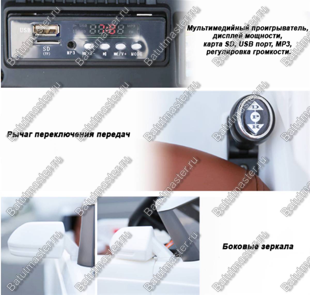 Детский электромобиль «Sport coupe» в стандартной комплектации прекрасно освещает путь в темн6оте, ведь для этого тут встроены яркие диодные фары. Заводится электрокар с кнопки и при этом раздается звук как в настоящее кроссовере.