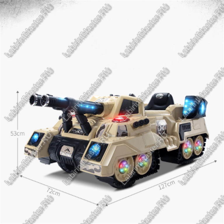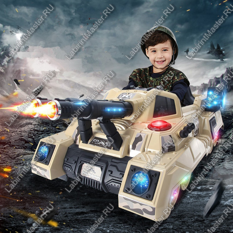 Яркий, красочный и, самое главное, оригинальный электромобиль, сделанный в виде военного танка. Мальчики, увидев такую солидную технику, точно не останутся в стороне. Им захочется на минутку почувствовать себя отважным военным за управлением коричневого танка.