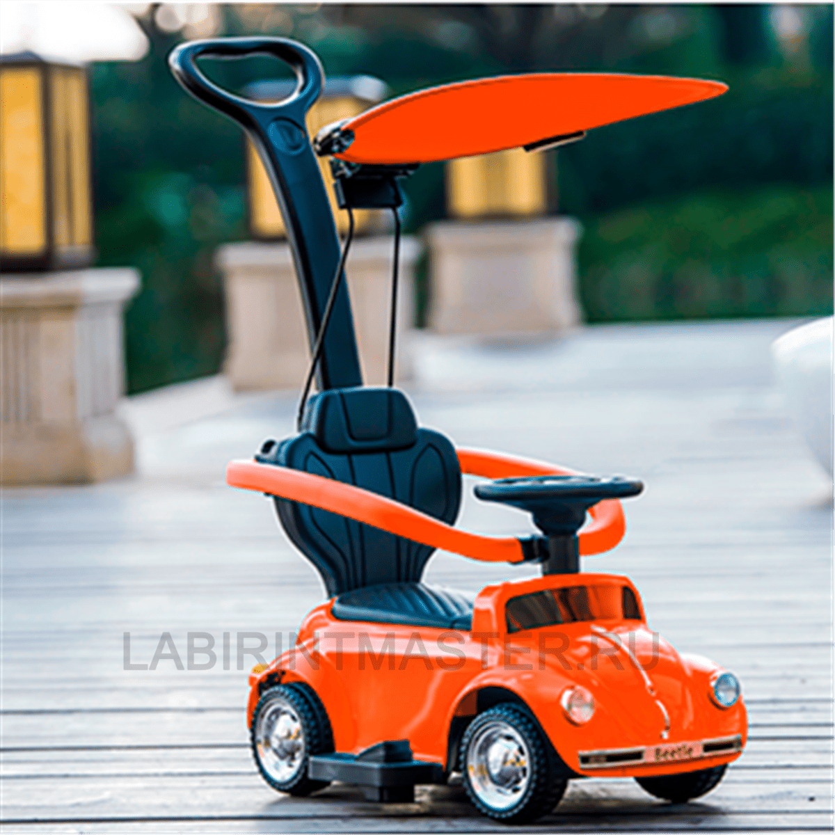 Детский электромобиль «Volkswagen Beetle» JQ618 создан специально для юных принцесс, которые хотят выделиться среди своих сверстниц и научиться вождению. В данном случае машинка является многофункциональной, она имеет ручки для взрослых, при помощи которых ее можно возить. Кроме того, по бокам есть ограждения, чтобы малыш не выпал, а также крыша, которая как нельзя придется кстати во время нахождения на улице под открытым солнцем. Удобный руль позволяет менять направление транспорта куда угодно, а кнопка газа и тормоза, расположенная справа внизу, приводит авто в движение.
