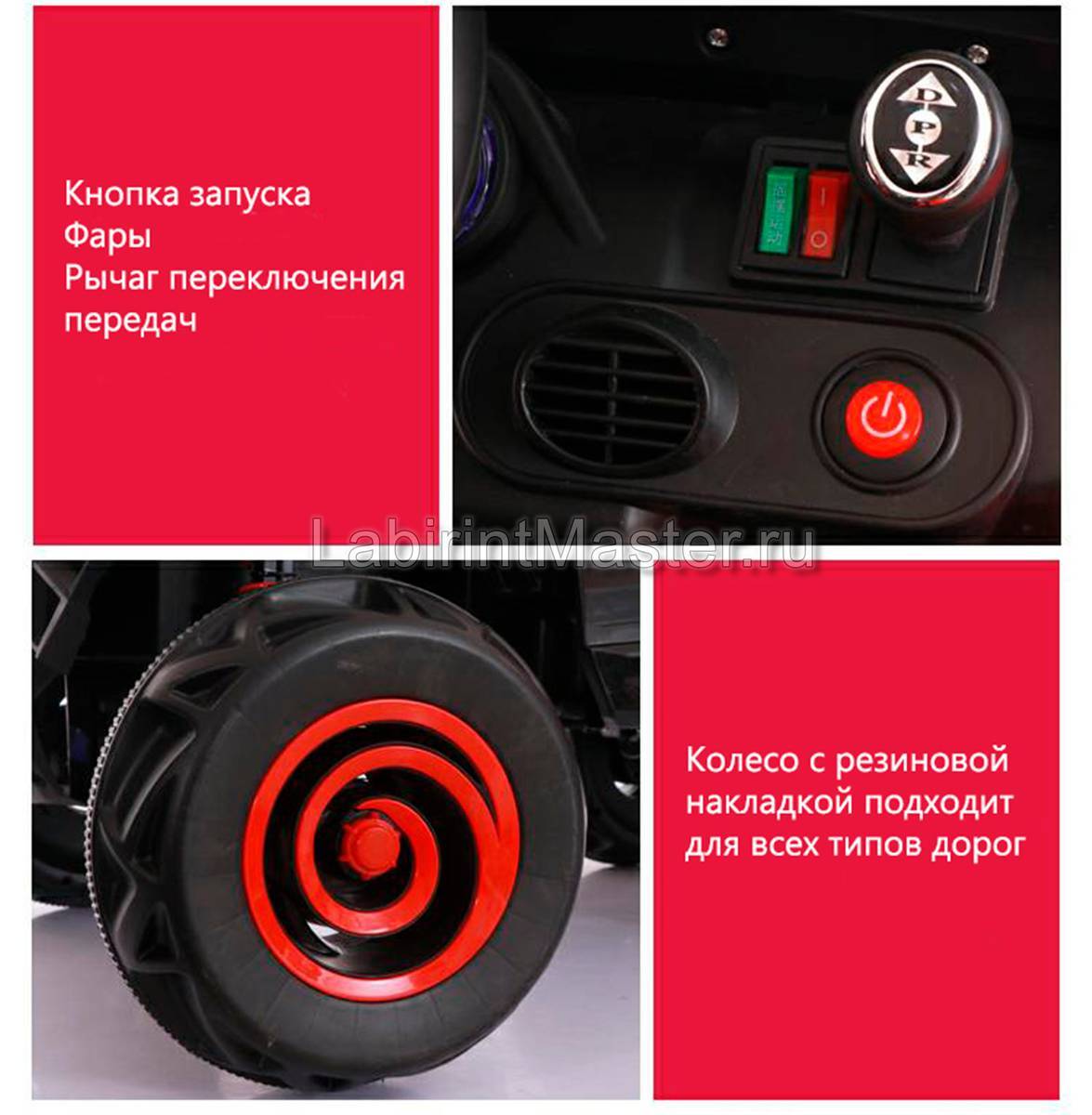 Разместившись в салоне и заведя электромобиль, ребёнок уже сам решает, как ему ездить, куда поворачивать и так далее. Машина предназначена для детских поездок, поэтому имеет все меры предосторожности: небольшая скорость, ремень безопасности, ровная езда.