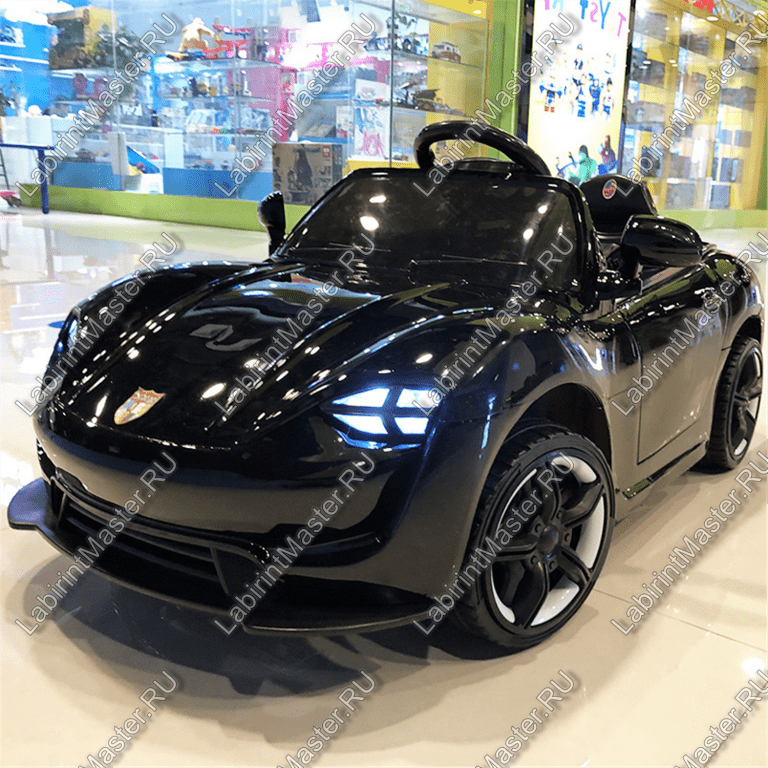 Идеальный и реальный дизайн литых дисков, низкопрофильные автопокрышки, светящиеся фары и главный неотъемлемый знак бренда Porsche. Как можно устоять перед таким искушением? Полностью блестящий черный кузов, изогнутые крылья, струящийся силуэт узнаваемого бренда – все это делает электромобиль не только привлекательным, но и узнаваемым даже издалека. Высокое рулевое колесо, выглядывающее за лобовое стекло и кресло водителя – это все, что нужно для увлекательной и комфортной поездки ребенка.