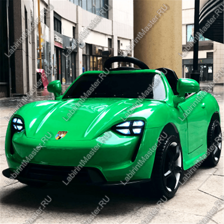Машина буквально сияет на свету благодаря глянцевой зелёной краске. Она не перенасыщена различными мелкими деталями, что отнюдь не делает её пустой и блёклой. У неё выдержан единый дизайн, она выглядит весьма колоритно и ярко. У электромобиля тонированные стёкла, нет крыши, что только подогреет интерес у ребят к ней. Выглядит она вполне реалистично как раз благодаря тому, что у неё не имеется множества аксессуаров. Главное, что есть руль, удобное водительское кресло и ремень безопасности – всё это позволит с комфортом водить электромобиль.