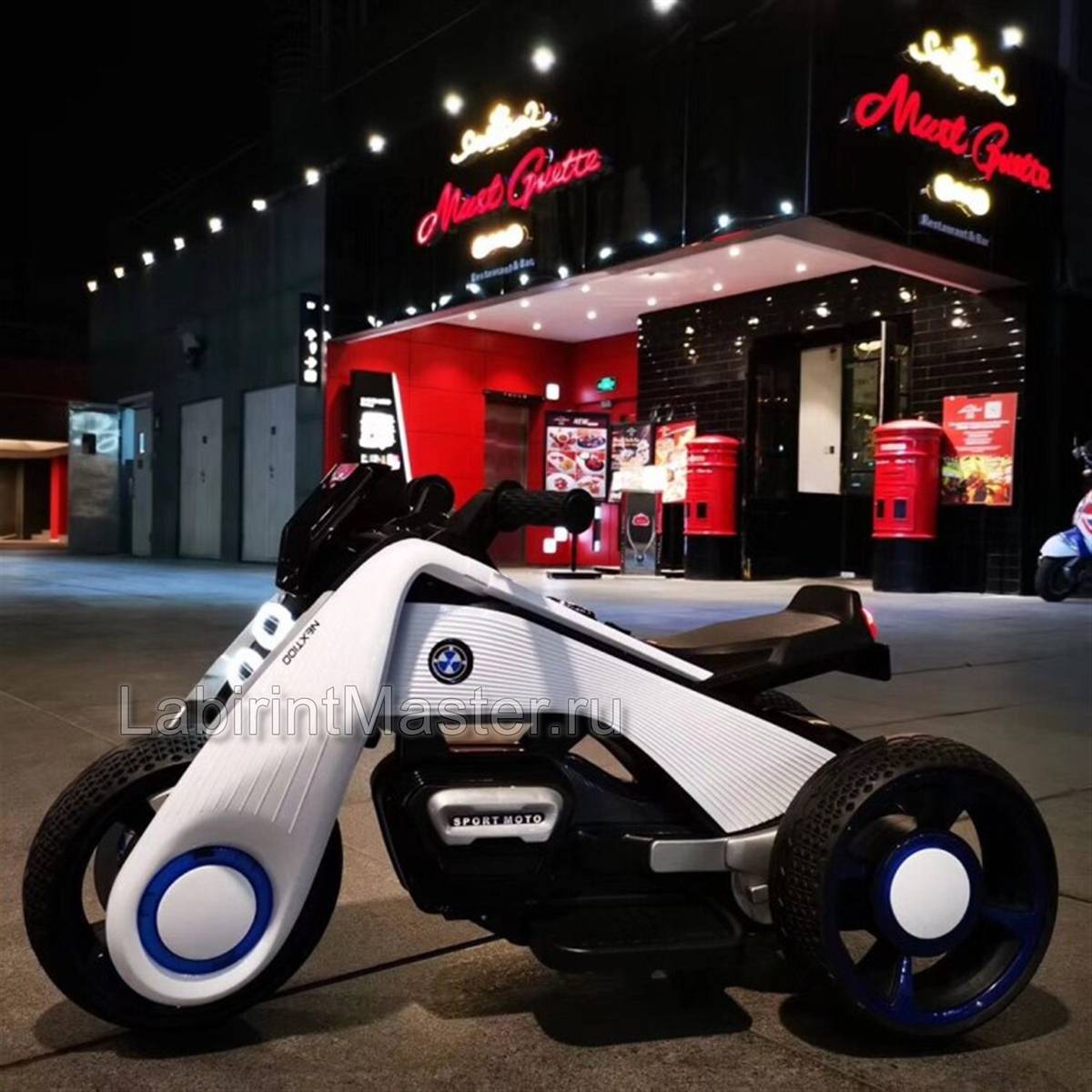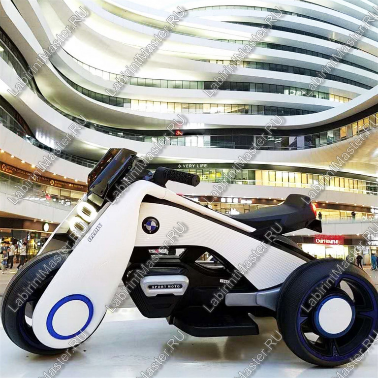 Детский электромотоцикл в оригинальном дизайне очень напоминает настоящий гоночный мотоцикл. Значок бренда BMW только усиливает презентабельность конструкции. Отличное сочетание белого и синего цвета в аттракционе позволяют ему быть универсальным, поэтому прокатиться на таком устройстве обязательно захотят как мальчишки, так и юные принцессы. Электромотоцикл рассчитан на 1 пассажира, но в нашем предложении этот аттракцион представлен в двух модификациях для детей от 2 до 5 лет, и для детей от 3 до 9 лет. Конечно, если вы располагаете достаточным пространством для игровой зоны, то такие электромотоциклы на вашей площадке должны встречаться в обеих категориях.