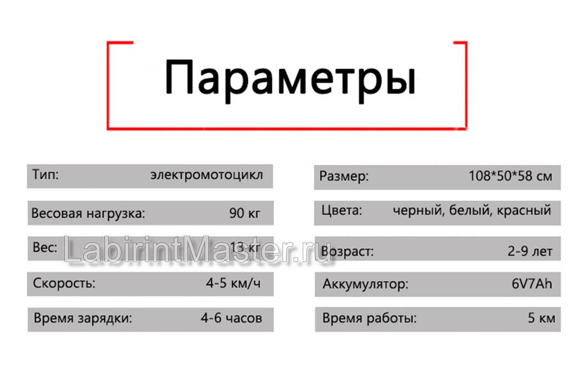Приводится в движение электромотоцикл при помощи электрического заряда аккумулятора. Если вы хотите увеличить прокат детского «мотоцикла», будет достаточно запастись еще несколькими аккумуляторами для срочной замены.