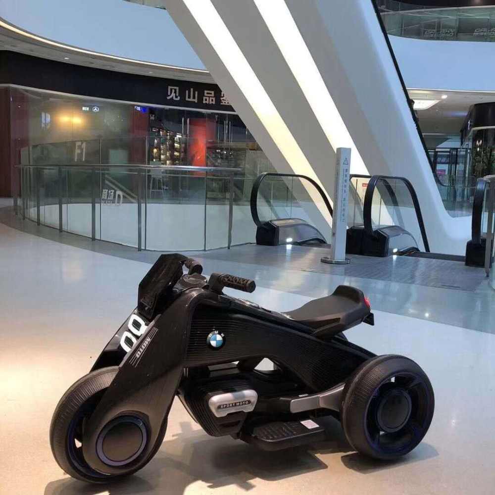 Электромотоцикл с фирменным значком BMW выглядит весьма интересно, за счёт своей оригинальной формы. Это не стандартный детский скутер, какие можно увидеть везде, это скутер футуристического дизайна. Чёрный матовый цвет добавляет ему солидности. Электромотоцикл имеет три колеса, а не два, чтобы даже самые маленькие детки смогли прокатиться на нём без какого-либо страха. Впереди у него имеется две фары, расположенные друг над другом. Сзади тоже имеется фара. «SOHO GALAXY» проработан до мельчайших деталей: он красив, удобен и безопасен.
