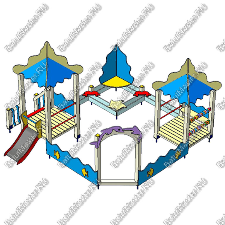 При производстве оборудования применяется оцинкованный металл, согласно ГОСТа, в зависимости от назначения, покрытый порошковой краской. Перед покраской на металл наносится высококачественная грунтовка. Также, применяется влагостойкая противоскользящая фанера, покрытая красками, устойчивыми к истиранию и ультрафиолету. Высота ступеней для всех игровых комплексов рассчитывается согласно ГОСТа по каждой возрастной группе детей. Все ступени – противоскользящие! Кроме этого, применяется влагостойкий клееный профилированный брус, покрытый красками, устойчивыми к истиранию и ультрафиолету. Возраст: 3-7 лет