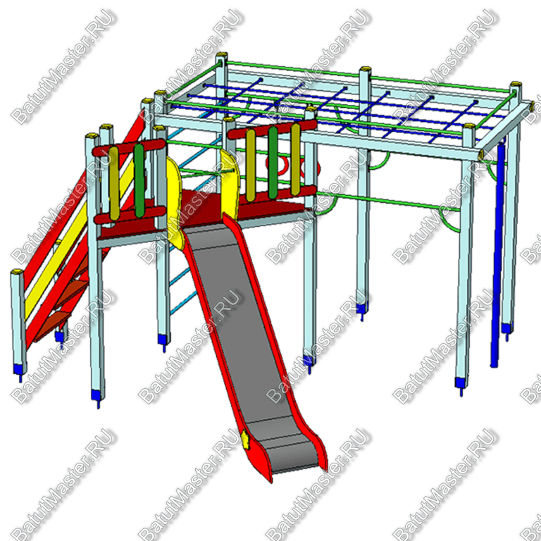 При производстве оборудования применяется оцинкованный металл, согласно ГОСТа, в зависимости от назначения, покрытый порошковой краской. Перед покраской на металл наносится высококачественная грунтовка. Также, применяется влагостойкая противоскользящая фанера, покрытая красками, устойчивыми к истиранию и ультрафиолету. Высота ступеней для всех игровых комплексов рассчитывается согласно ГОСТа по каждой возрастной группе детей. Все ступени – противоскользящие! Кроме этого, применяется влагостойкий клееный профилированный брус, покрытый красками, устойчивыми к истиранию и ультрафиолету.