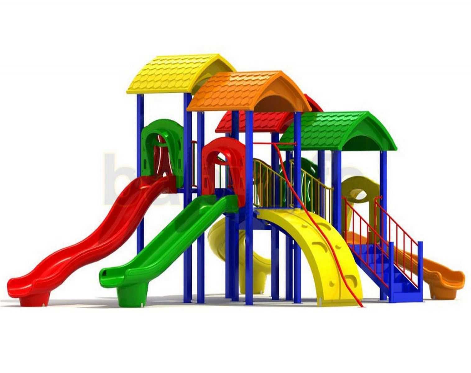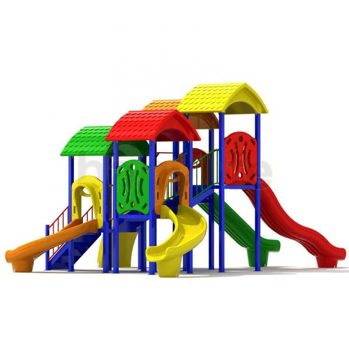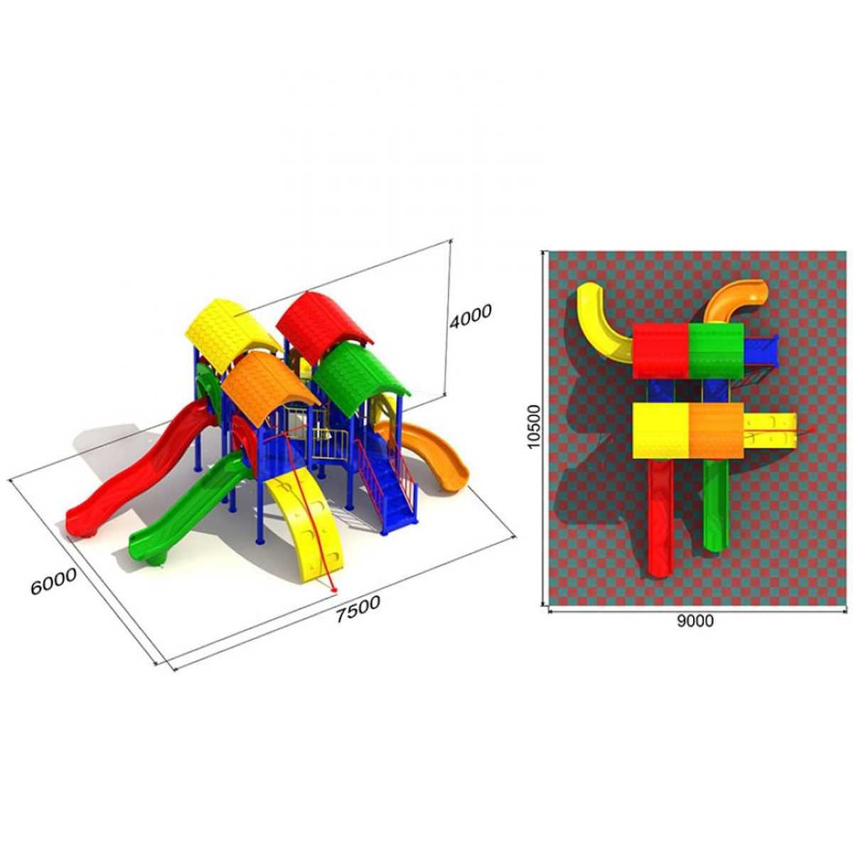 - Горки, крыши выполнены из пищевого полиэтилена низкого давления (ПНД), который не выгорает на солнце и сохраняет яркие цвета до 15 лет.