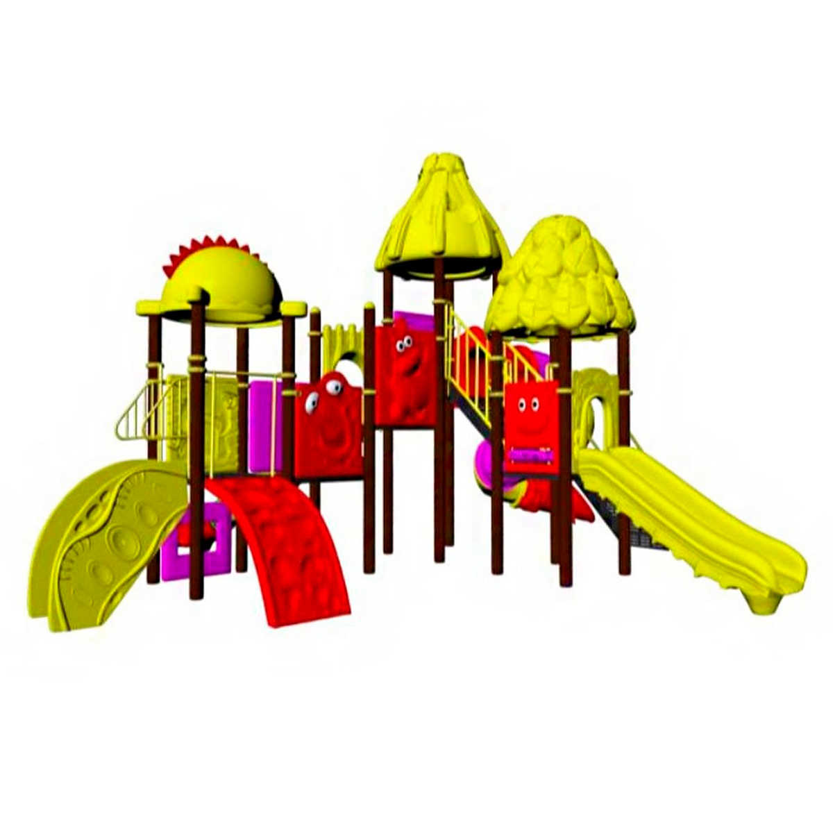 - Горки, крыши выполнены из пищевого полиэтилена низкого давления (ПНД), который не выгорает на солнце и сохраняет яркие цвета до 15 лет.