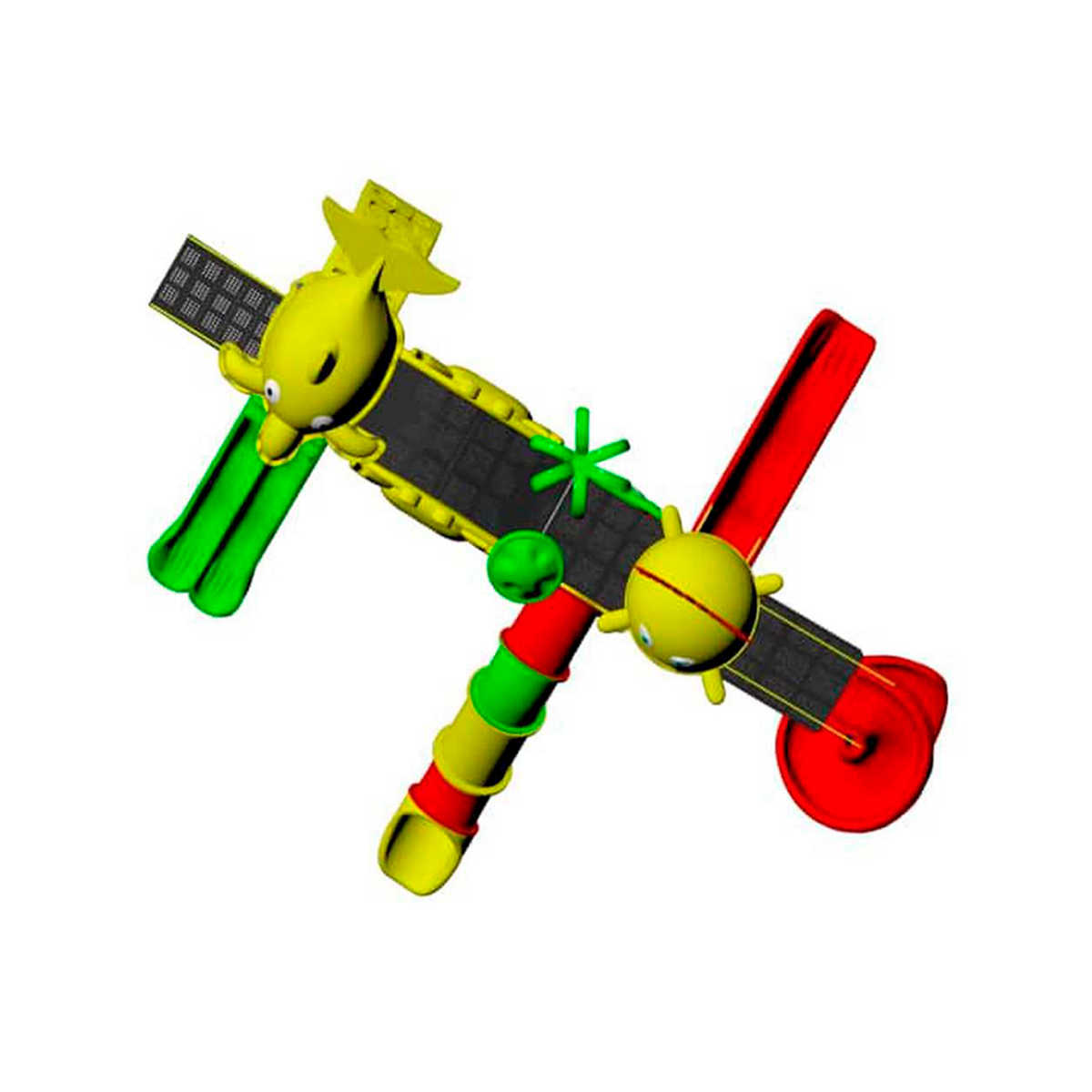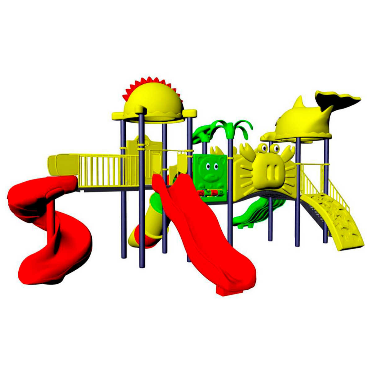 - Горки, крыши выполнены из пищевого полиэтилена низкого давления (ПНД), который не выгорает на солнце и сохраняет яркие цвета до 15 лет.