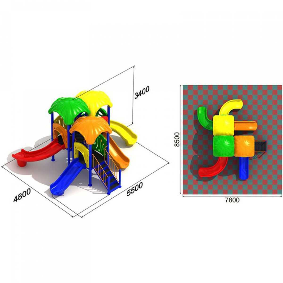 - Горки, крыши выполнены из пищевого полиэтилена низкого давления (ПНД), который не выгорает на солнце и сохраняет яркие цвета до 15 лет.