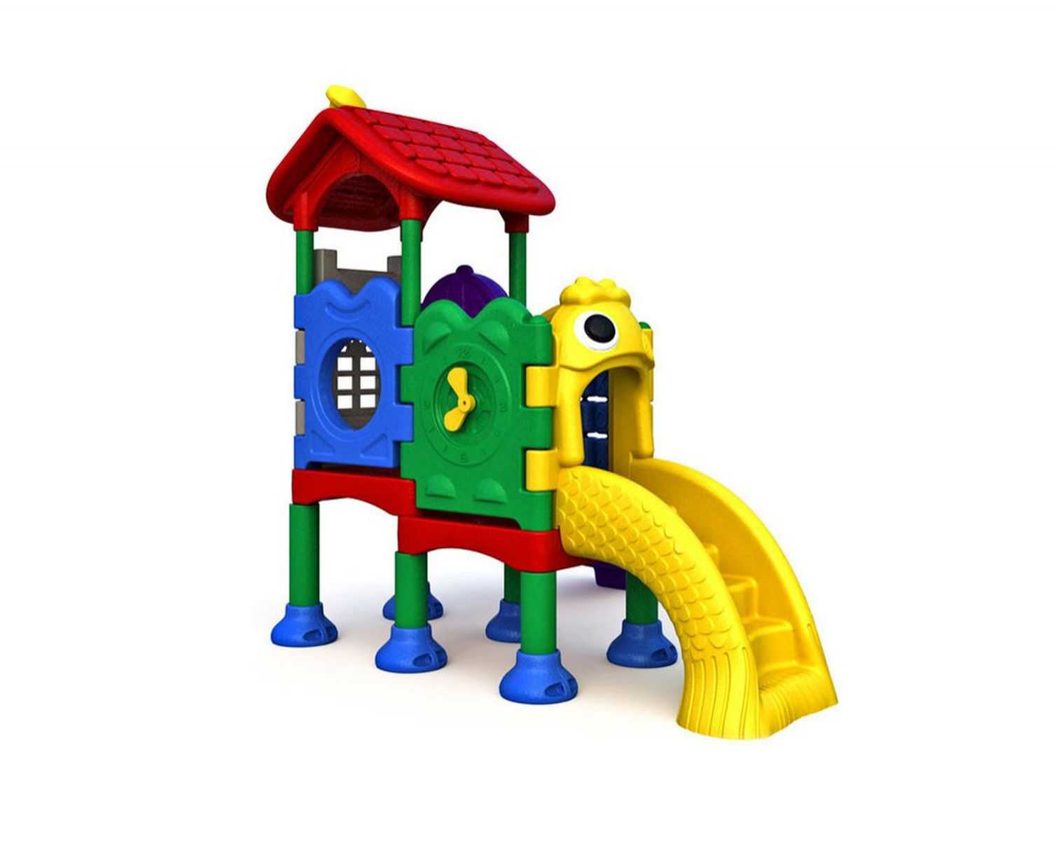 - Горки, крыши выполнены из пищевого полиэтилена низкого давления (ПНД), который не выгорает на солнце и сохраняет яркие цвета до 15 лет.