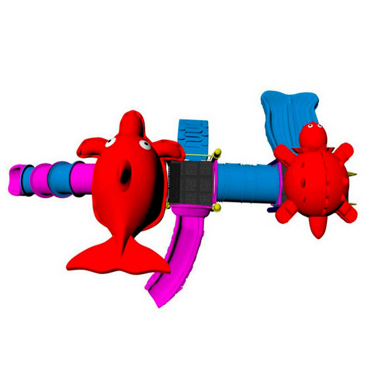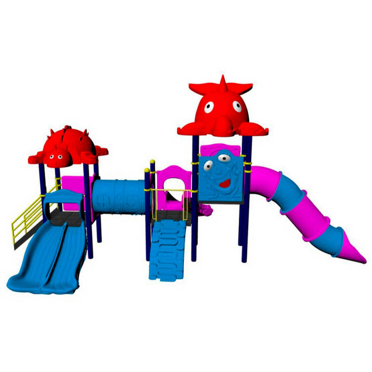 - Горки, крыши выполнены из пищевого полиэтилена низкого давления (ПНД), который не выгорает на солнце и сохраняет яркие цвета до 15 лет.