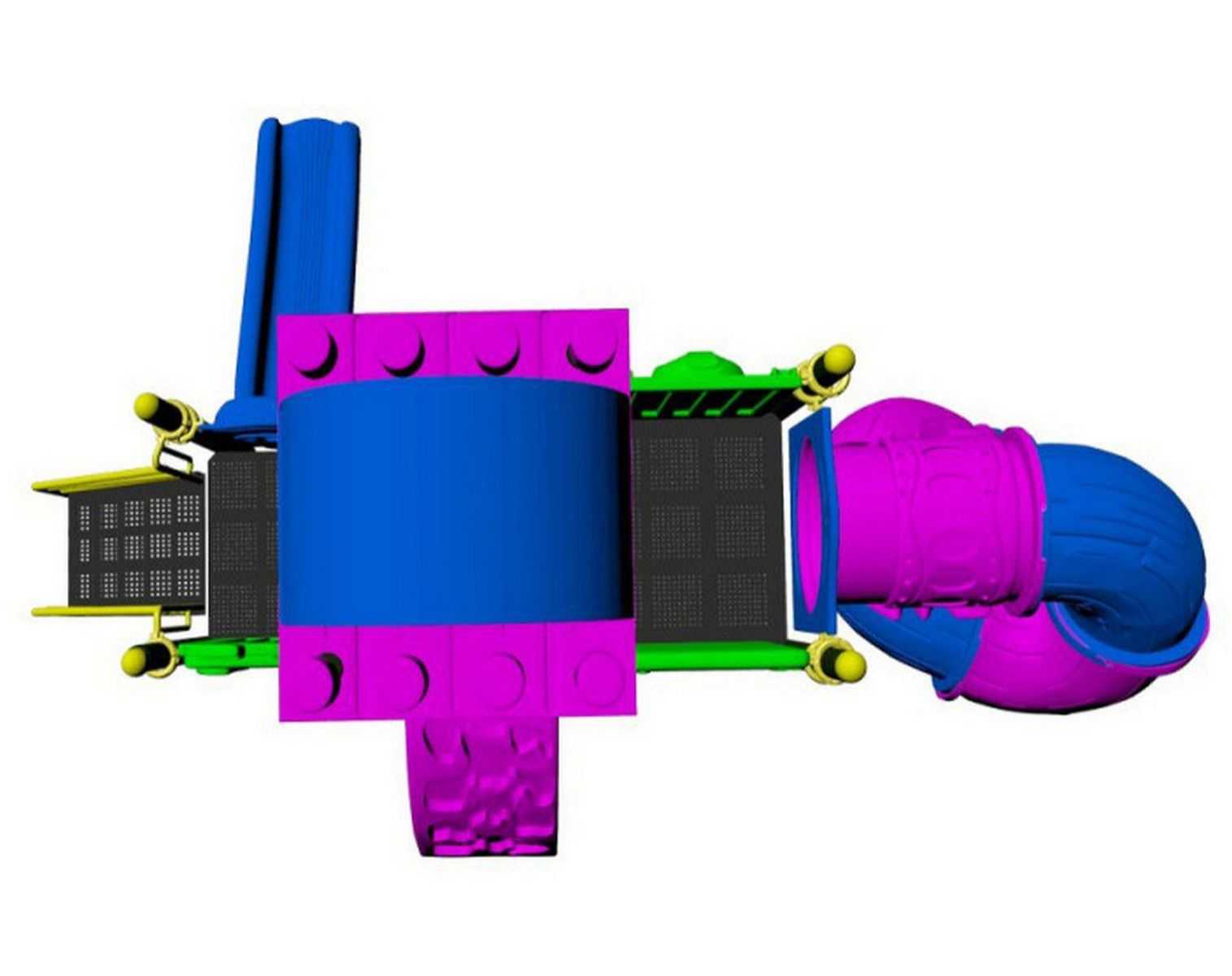 - Горки, крыши выполнены из пищевого полиэтилена низкого давления (ПНД), который не выгорает на солнце и сохраняет яркие цвета до 15 лет.