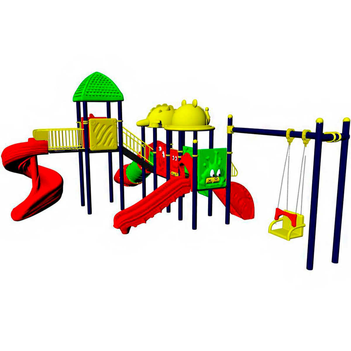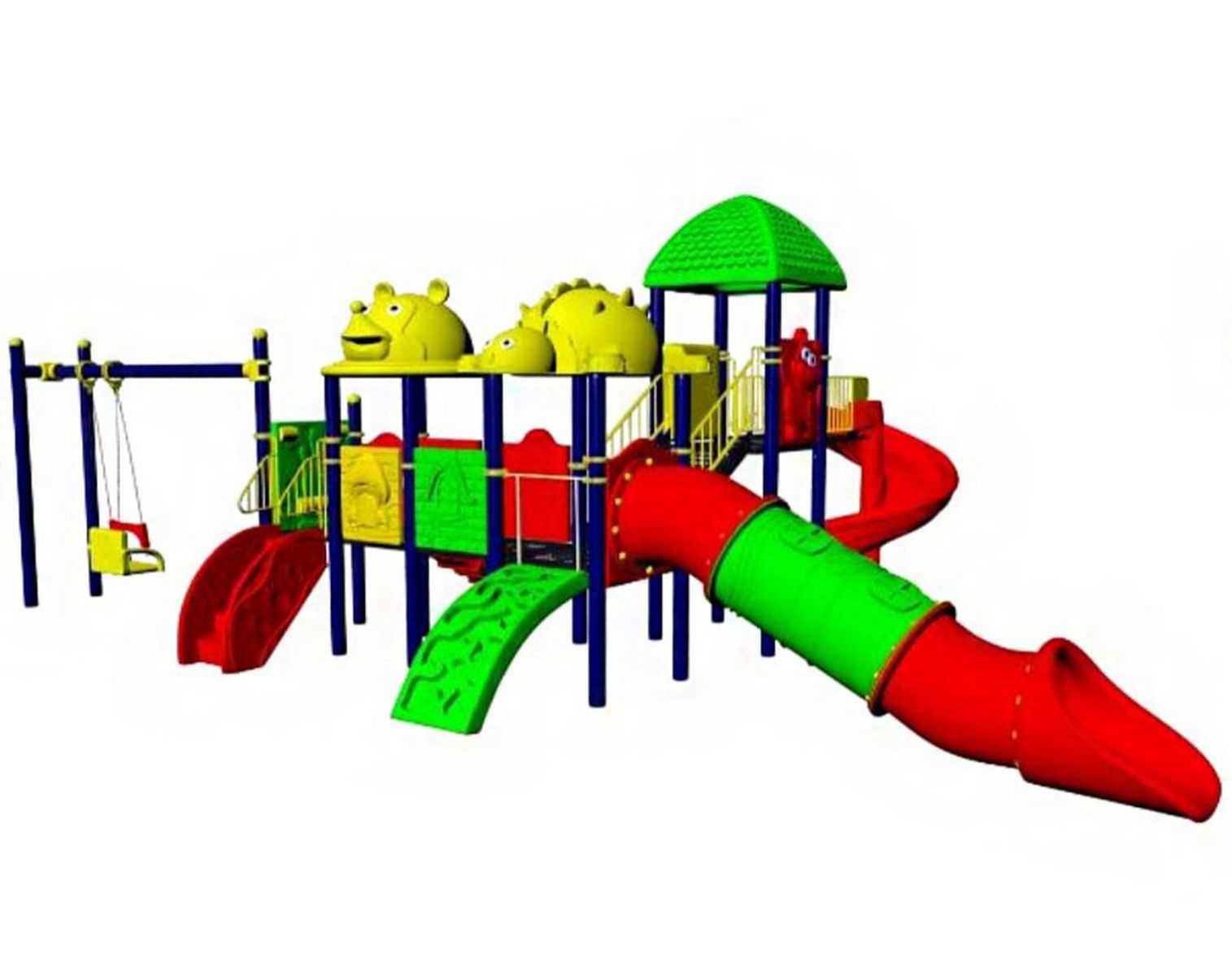 - Горки, крыши выполнены из пищевого полиэтилена низкого давления (ПНД), который не выгорает на солнце и сохраняет яркие цвета до 15 лет.