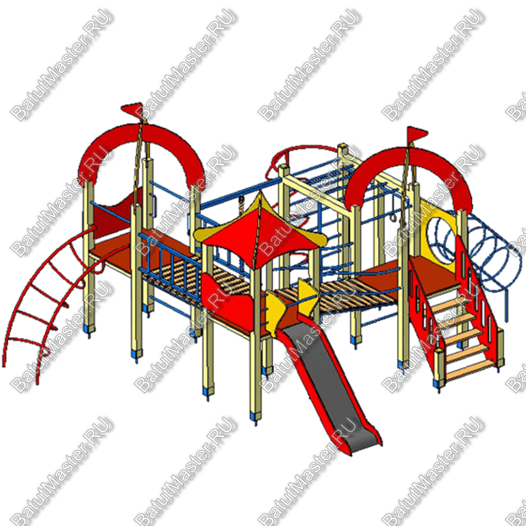 При производстве оборудования применяется оцинкованный металл, согласно ГОСТа, в зависимости от назначения, покрытый порошковой краской. Перед покраской на металл наносится высококачественная грунтовка. Также, применяется влагостойкая противоскользящая фанера, покрытая красками, устойчивыми к истиранию и ультрафиолету. Высота ступеней для всех игровых комплексов рассчитывается согласно ГОСТа по каждой возрастной группе детей. Все ступени – противоскользящие! Кроме этого, применяется влагостойкий клееный профилированный брус, покрытый красками, устойчивыми к истиранию и ультрафиолету.