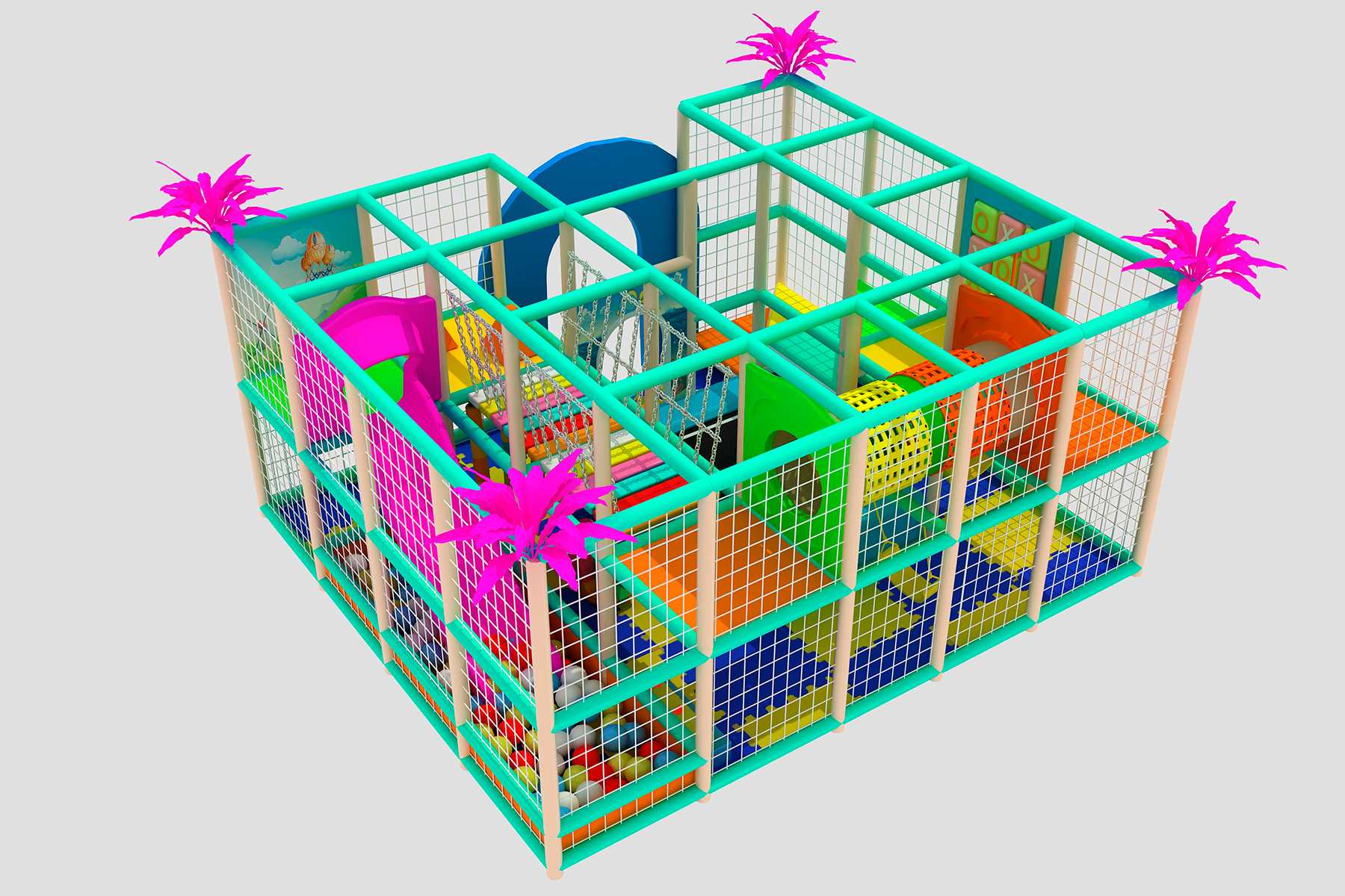 - Сетчатое ограждение не дает детям выпасть за пределы лабиринта.