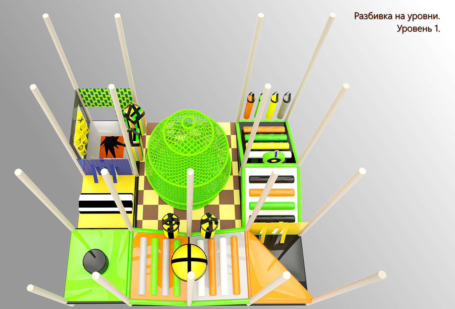 - Мягкий пол и зоны приземления в ключевых точках комплекса