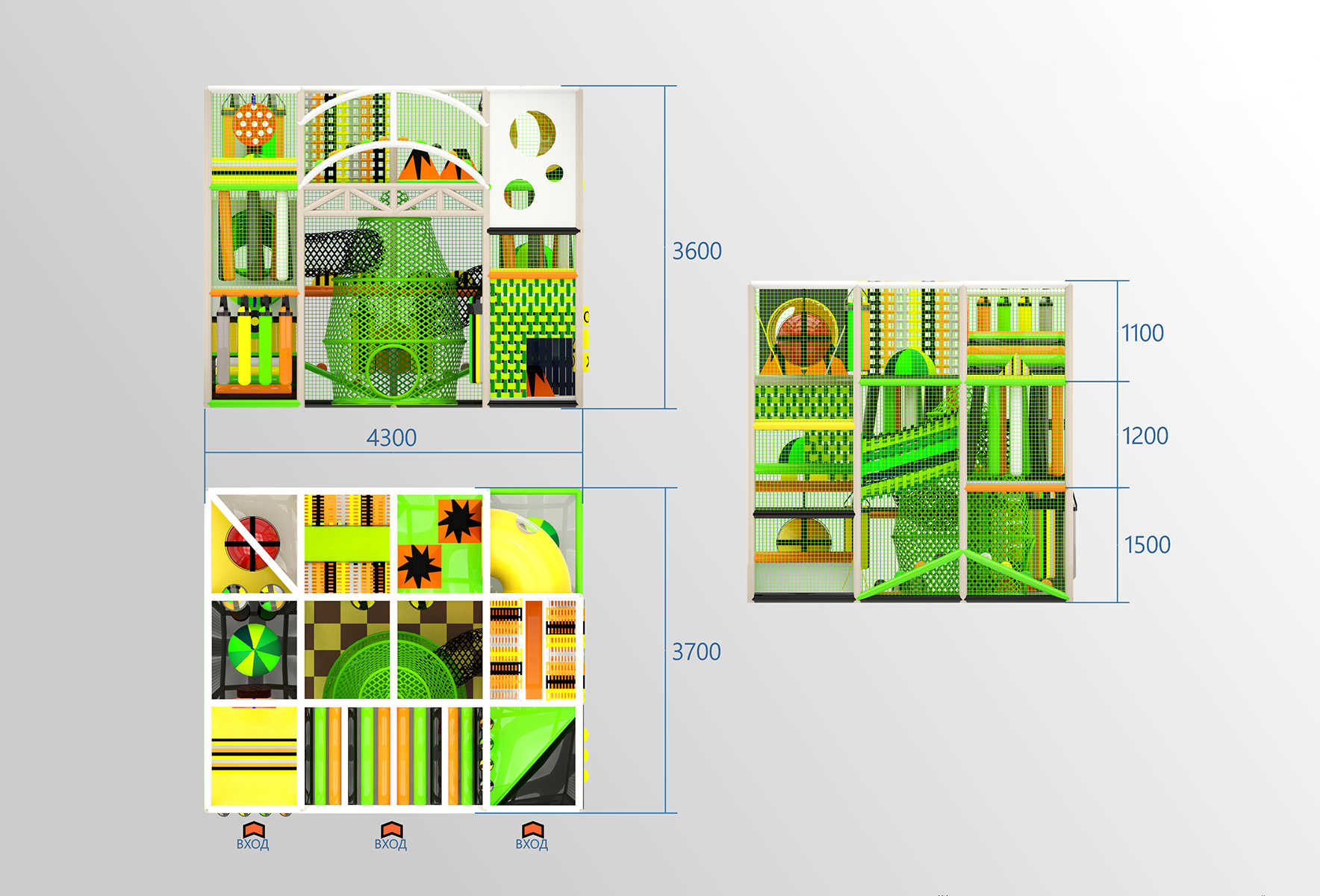 · Просторные проходы и игровые модули для свободного передвижения детей.