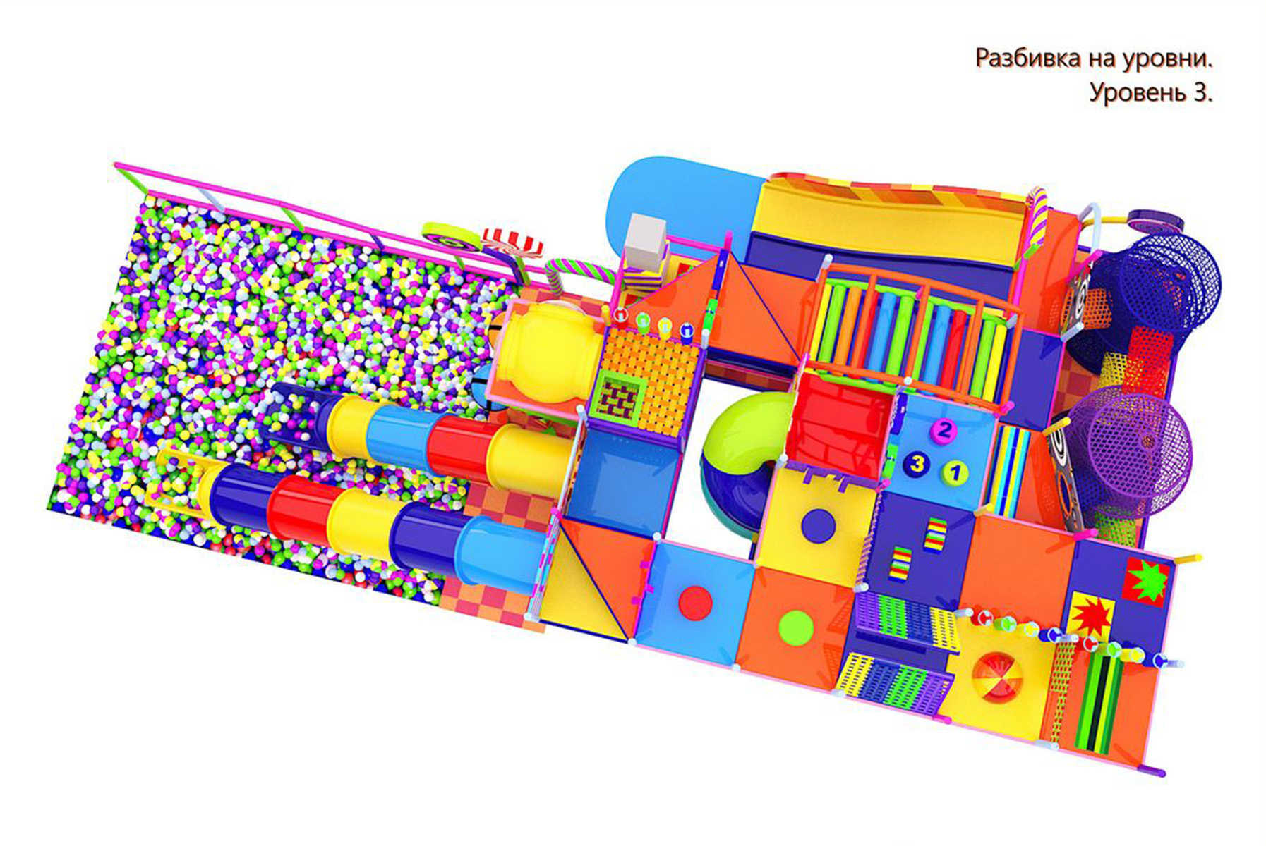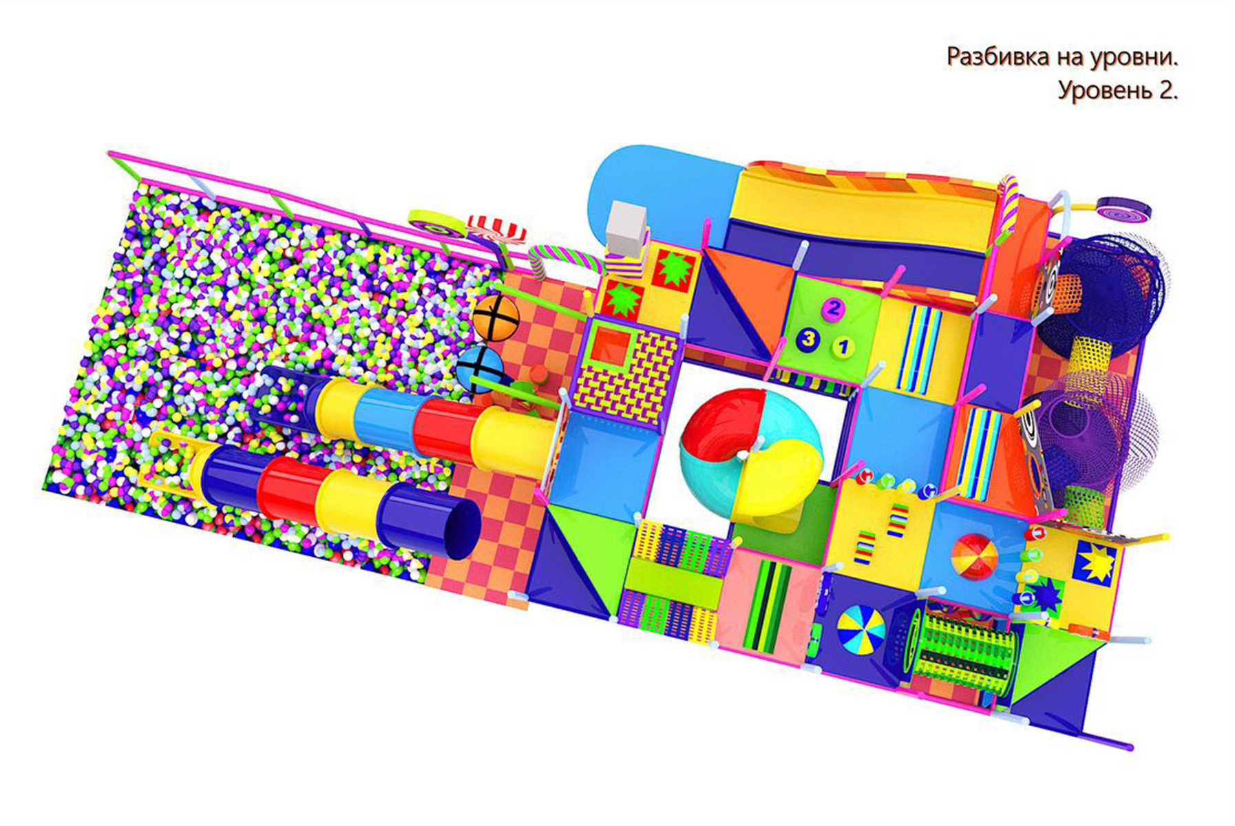 Когда дети попадают в «Леденцовый Экстрим», их глаза загораются от восторга! Этот детский игровой лабиринт – настоящий взрыв красок, эмоций и захватывающих развлечений. Он словно огромная конфетная страна, где можно прыгать, лазить, кататься, пробираться через туннели и спускаться с горок прямо в радужное море шариков.