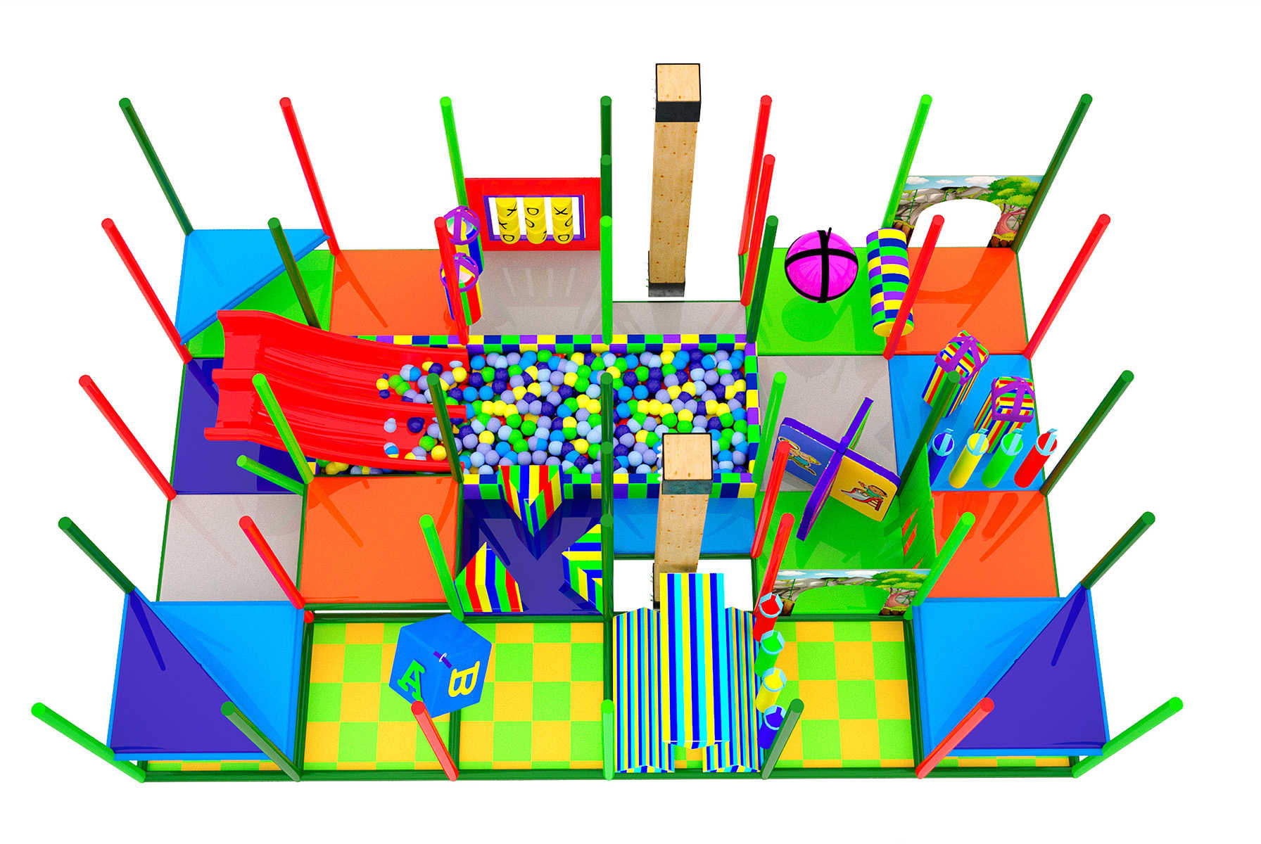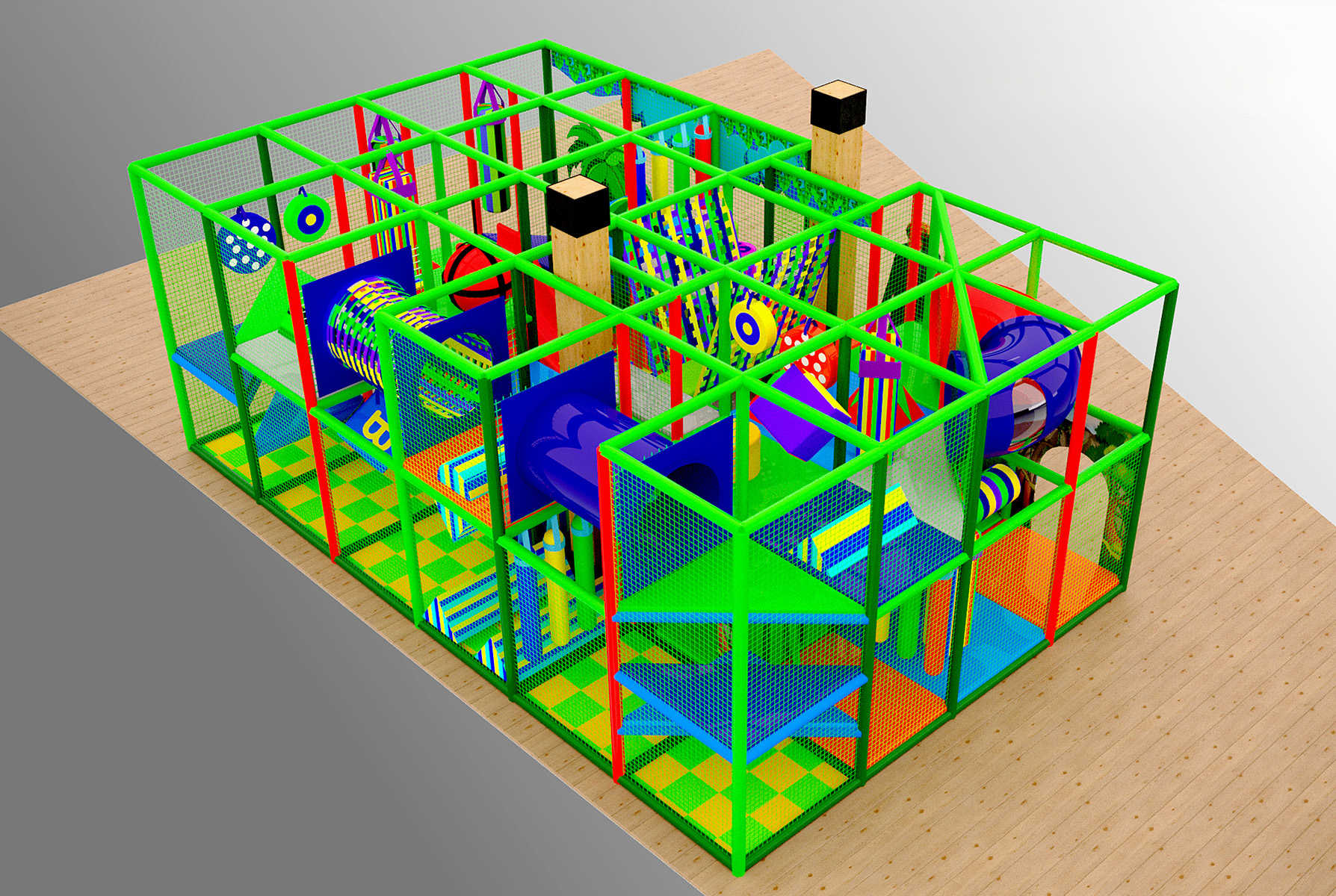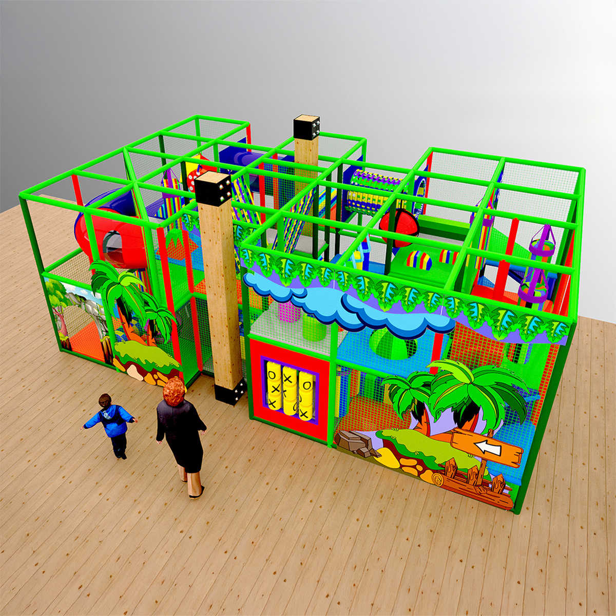 Сочные зеленые оттенки, пальмы, мягкие игровые элементы и туннели – всё создано для того, чтобы дети с радостью проводили время, а родители могли спокойно отдыхать. Такой лабиринт – идеальное решение для торговых центров, кафе, детских развлекательных площадок и даже жилых комплексов!