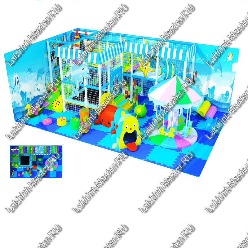 С самого входа малышей встречают веселые морские персонажи, а дальше — лабиринт, полный тайн и приключений. Карусель, батут, тоннели, мягкие преграды и красочные игровые зоны создают атмосферу настоящего праздника!
