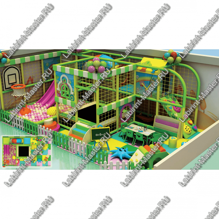 Этот лабиринт идеально впишется в любую детскую развлекательную зону благодаря своей компактной, но функциональной конструкции. Пространство разделено на несколько игровых зон: