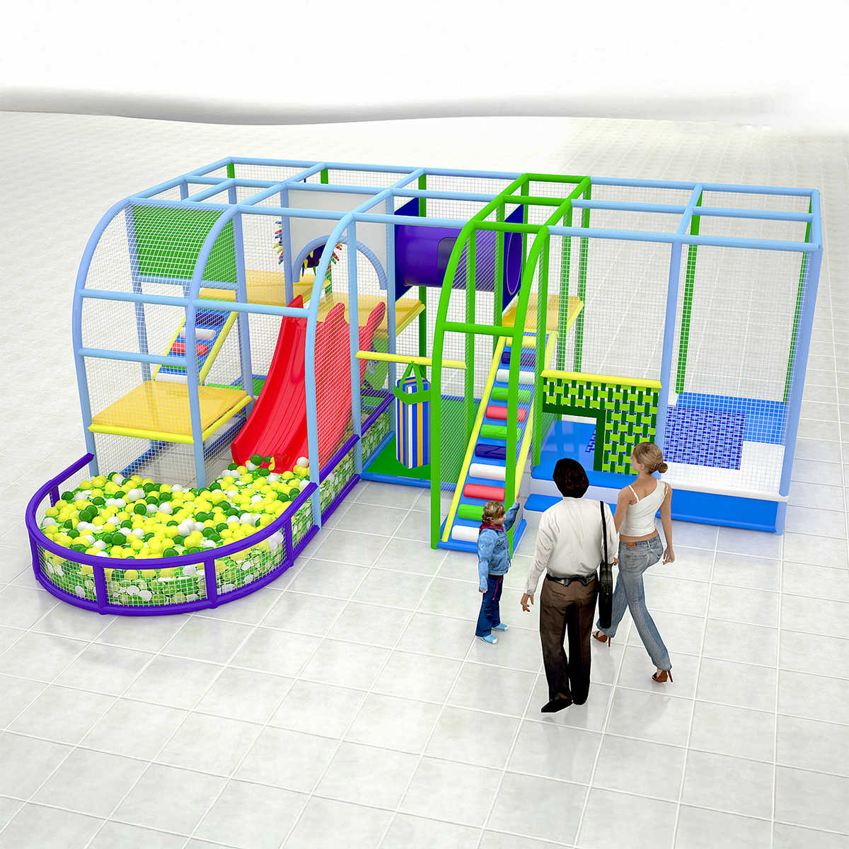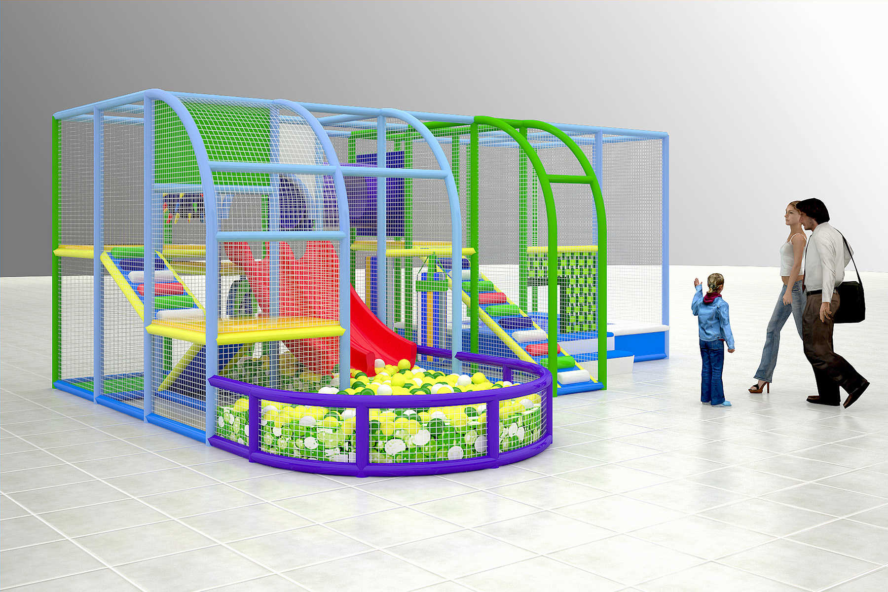 Игровой лабиринт можно установить в самых разных локациях, где важно привлекать семьи с детьми:
