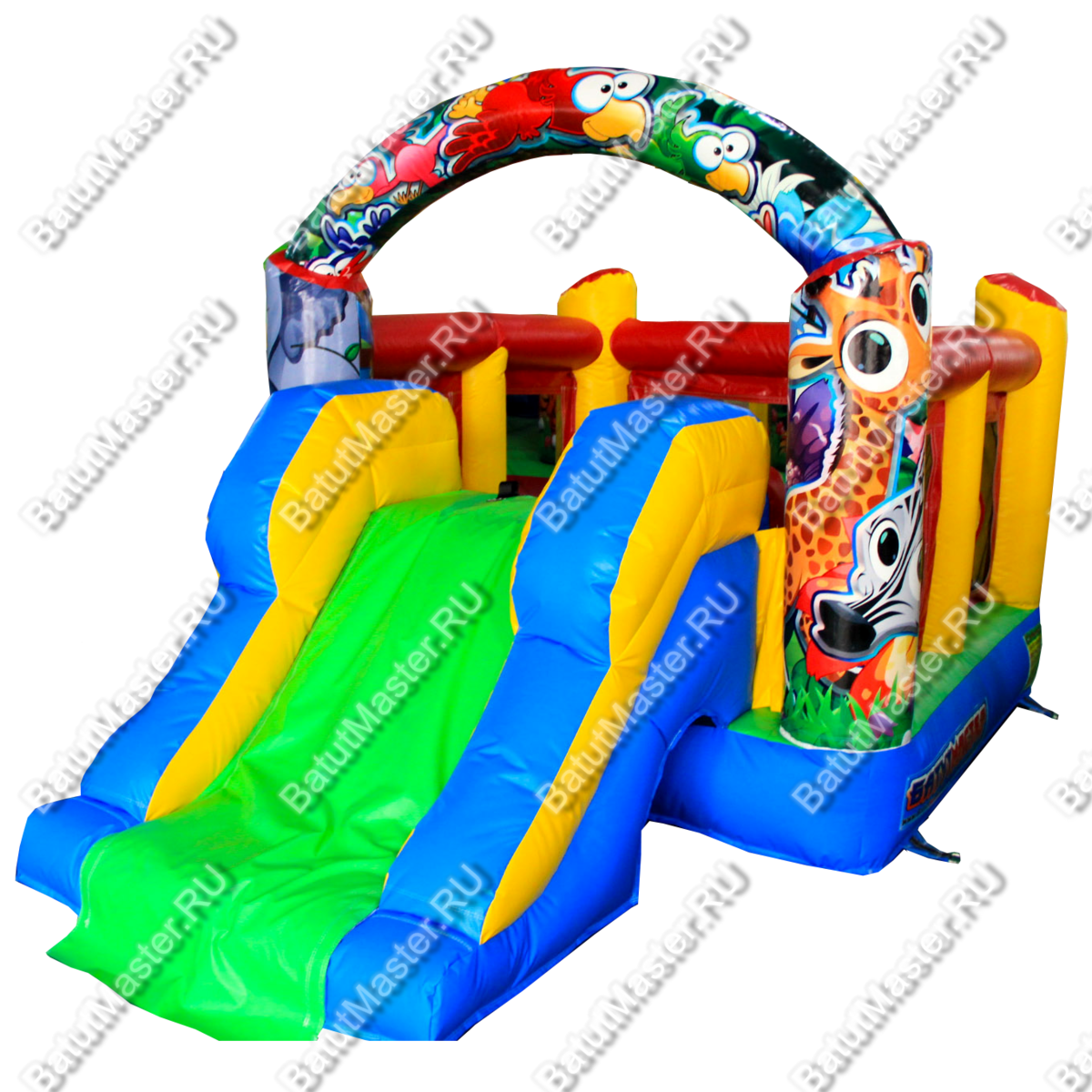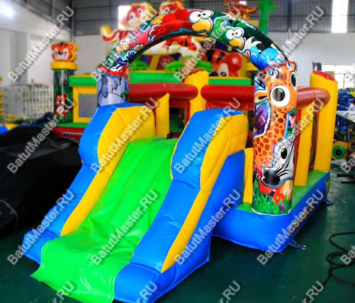 Коммерческий надувной батут «Детская смекалка» - симпатичный компактный батут, который сочетает в себе все полезные качества для небольшого аттракциона. Конструкция имеет яркую притягивающую взгляд окраску, что крайне важно для детей. Маленькие посетители будут выбирать батут в первую очередь за внешний вид, и «Детская смекалка» полностью удовлетворит их желание. Помимо ярких красок, батут может похвастаться красивым принтом с весёлыми и забавными животными. Эти милые пучеглазики заставят детей весело хохотать, а хорошее настроение - это самое главное.