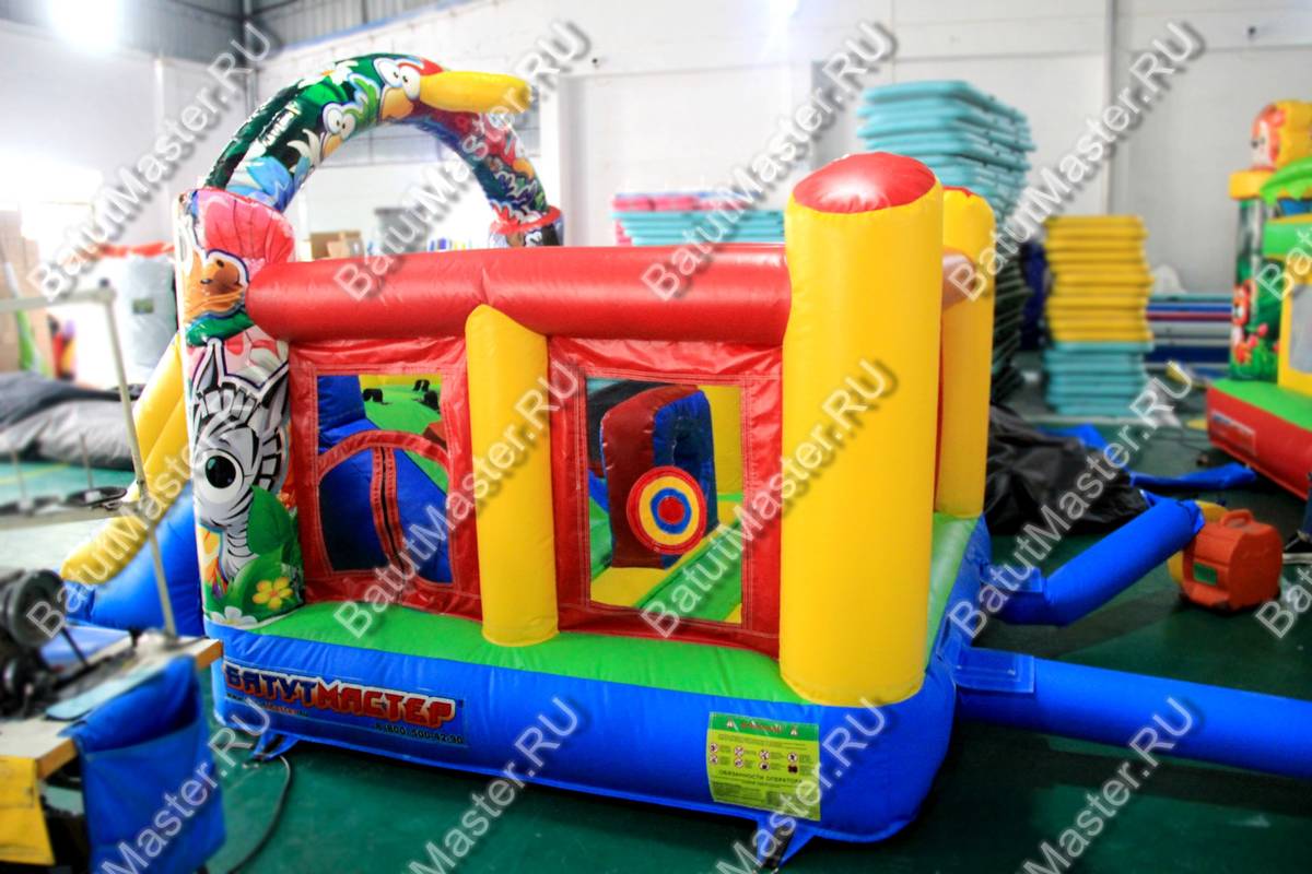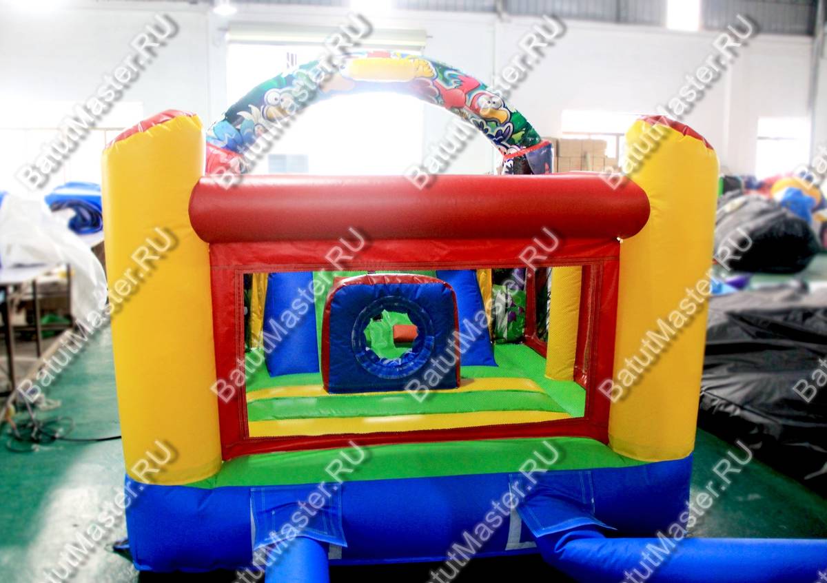 Батут представляет собой классическую надувную горку. На ограждённой задней площадке находится лесенка и игровая фигура в виде кольца, через которое можно ползать. Несмотря на компактность этого надувного батута, тут найдётся место и для прыжков на задней площадке.
