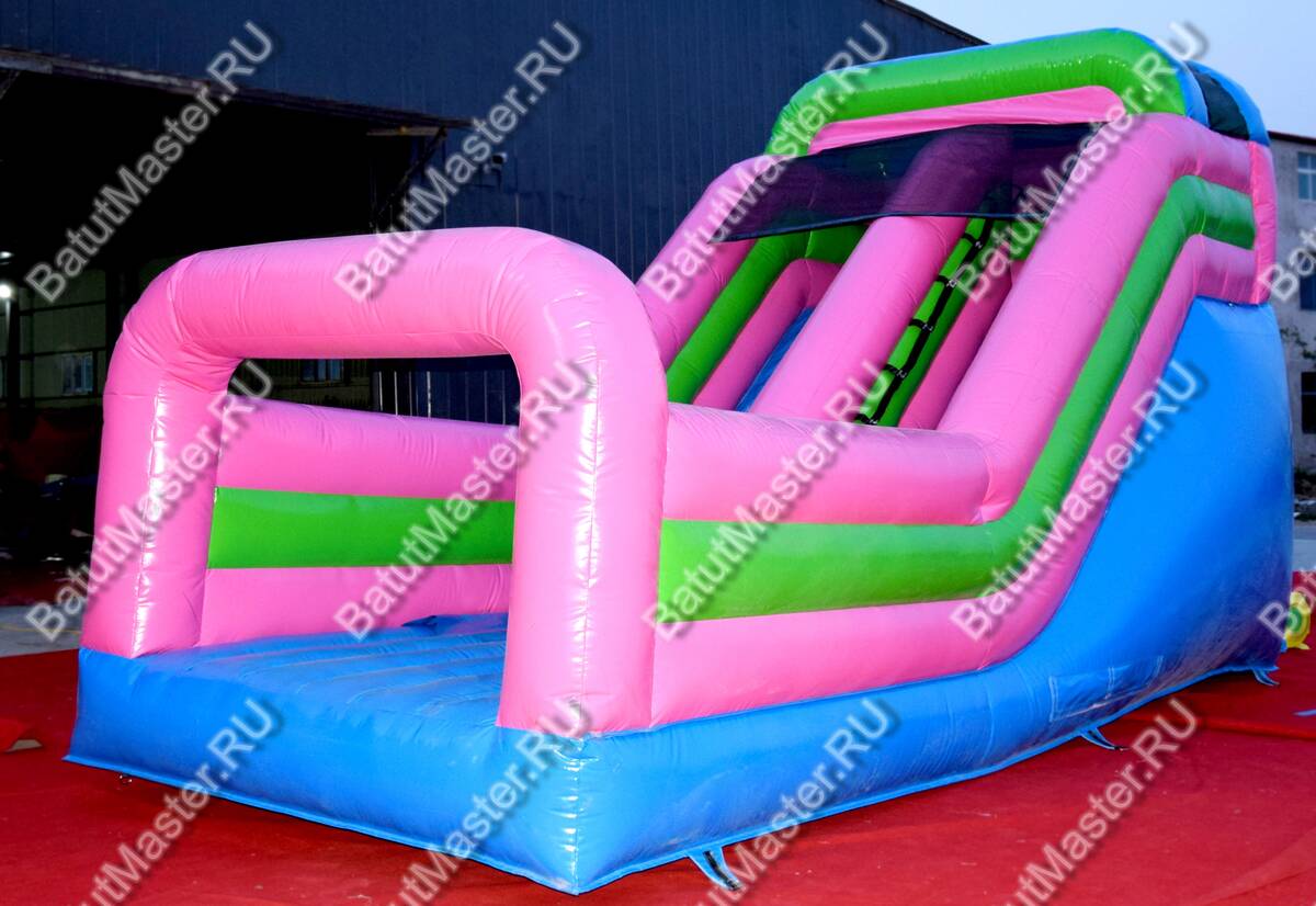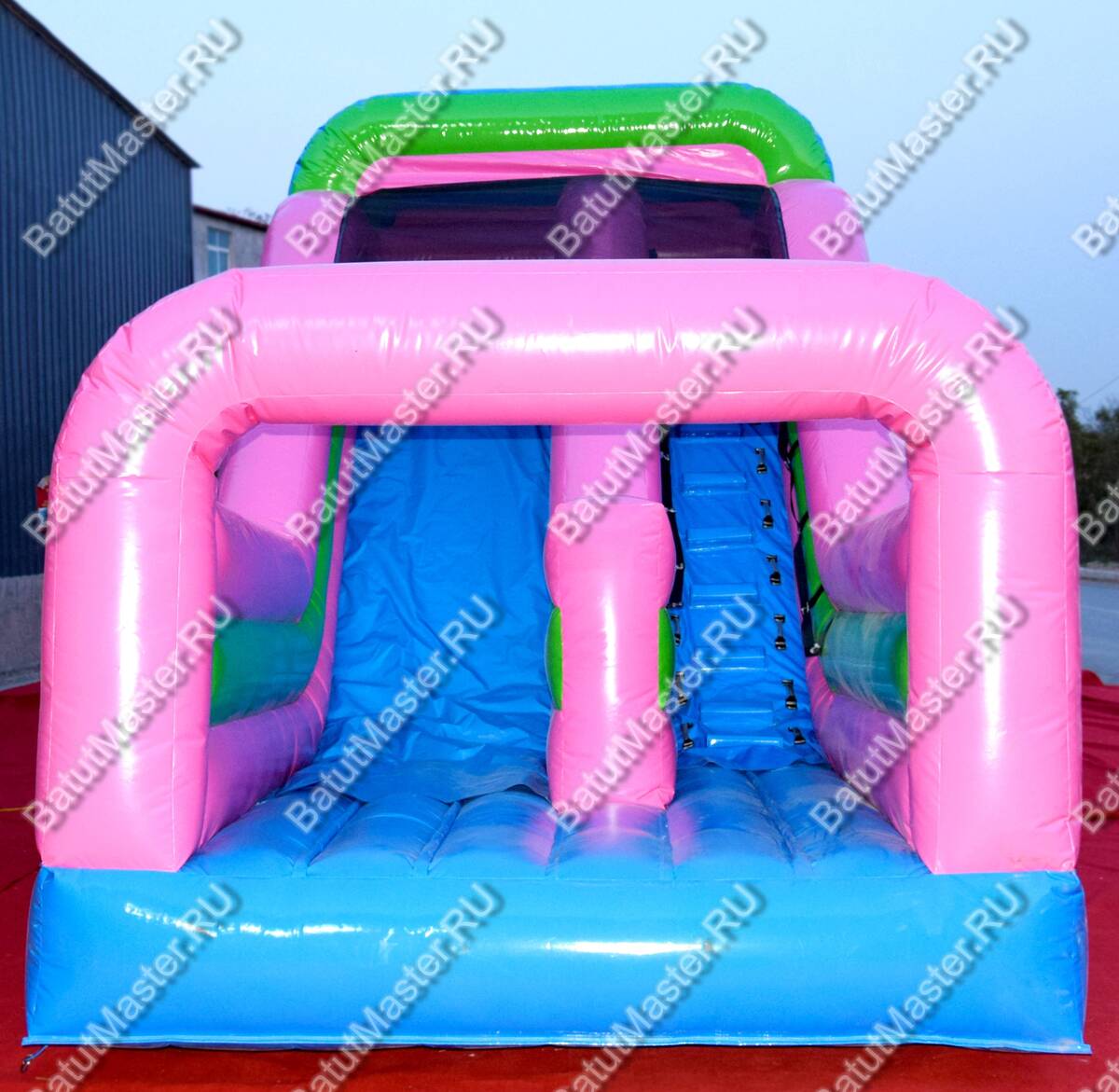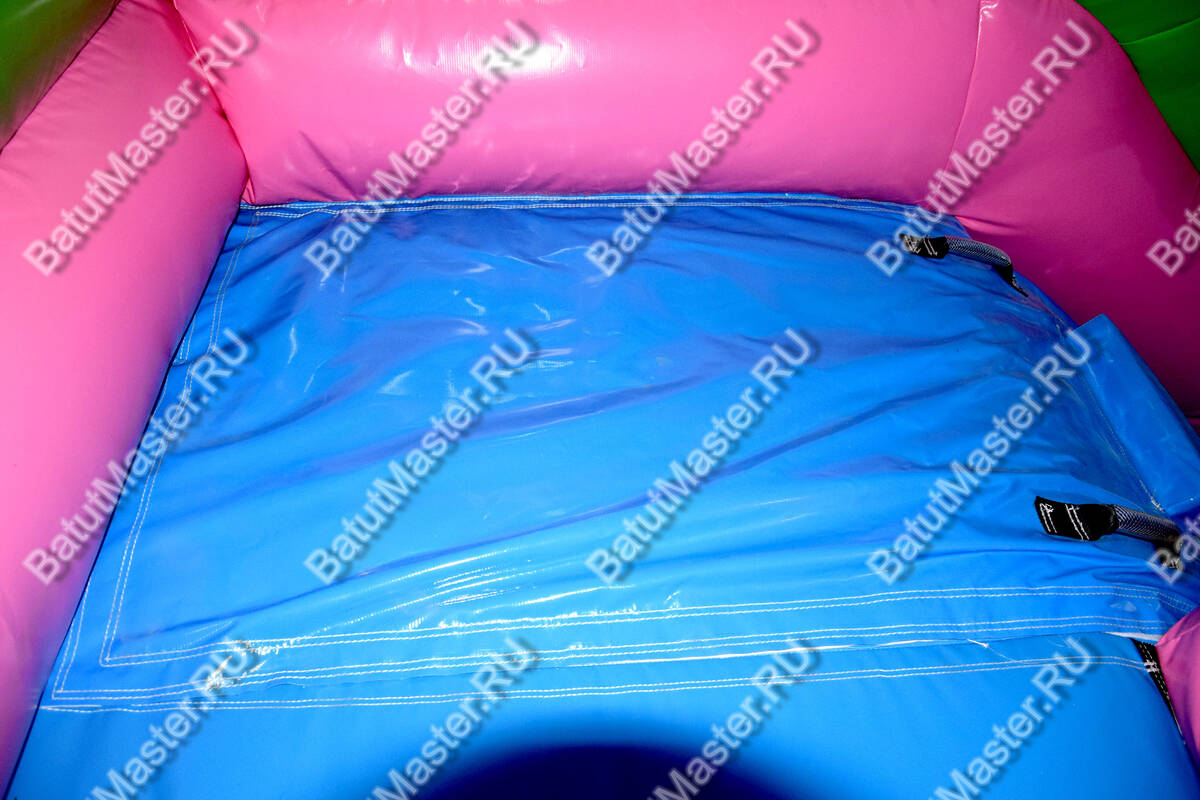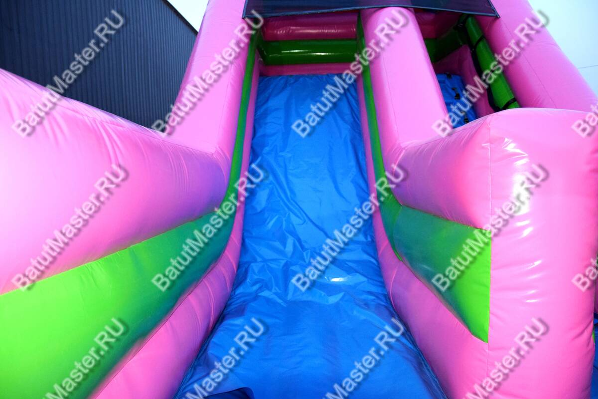 Надувной батут отличается великолепным внешним видом и функциональностью. Яркий розовый цвет сразу привлечет внимание. Это не просто батут, на котором можно прыгать и кувыркаться, это еще высокая надувная горка. Дети просто обожают катиться вниз с ветерком, а потом приложив усилия, подниматься вверх. Присутствие батута всегда дополняет развлекательную программу, так как большую часть времени дети будут прыгать и кататься с горки.