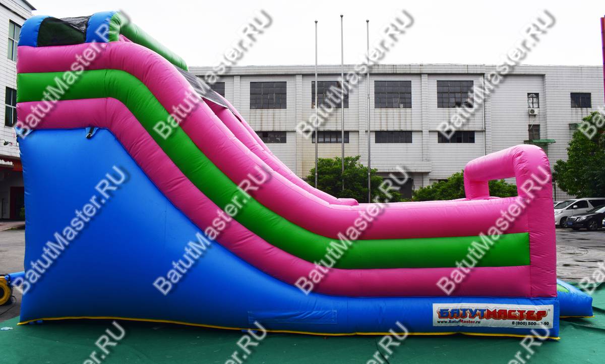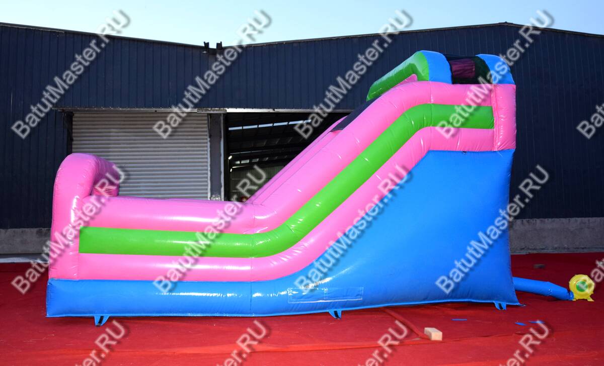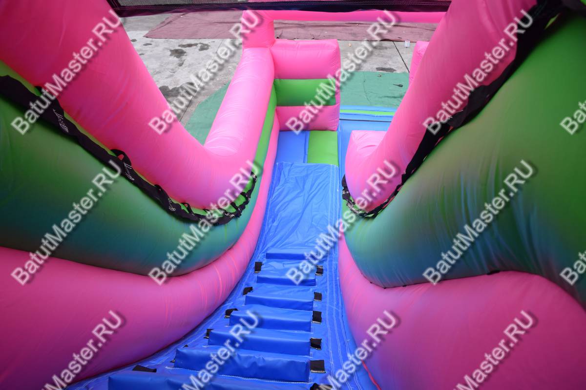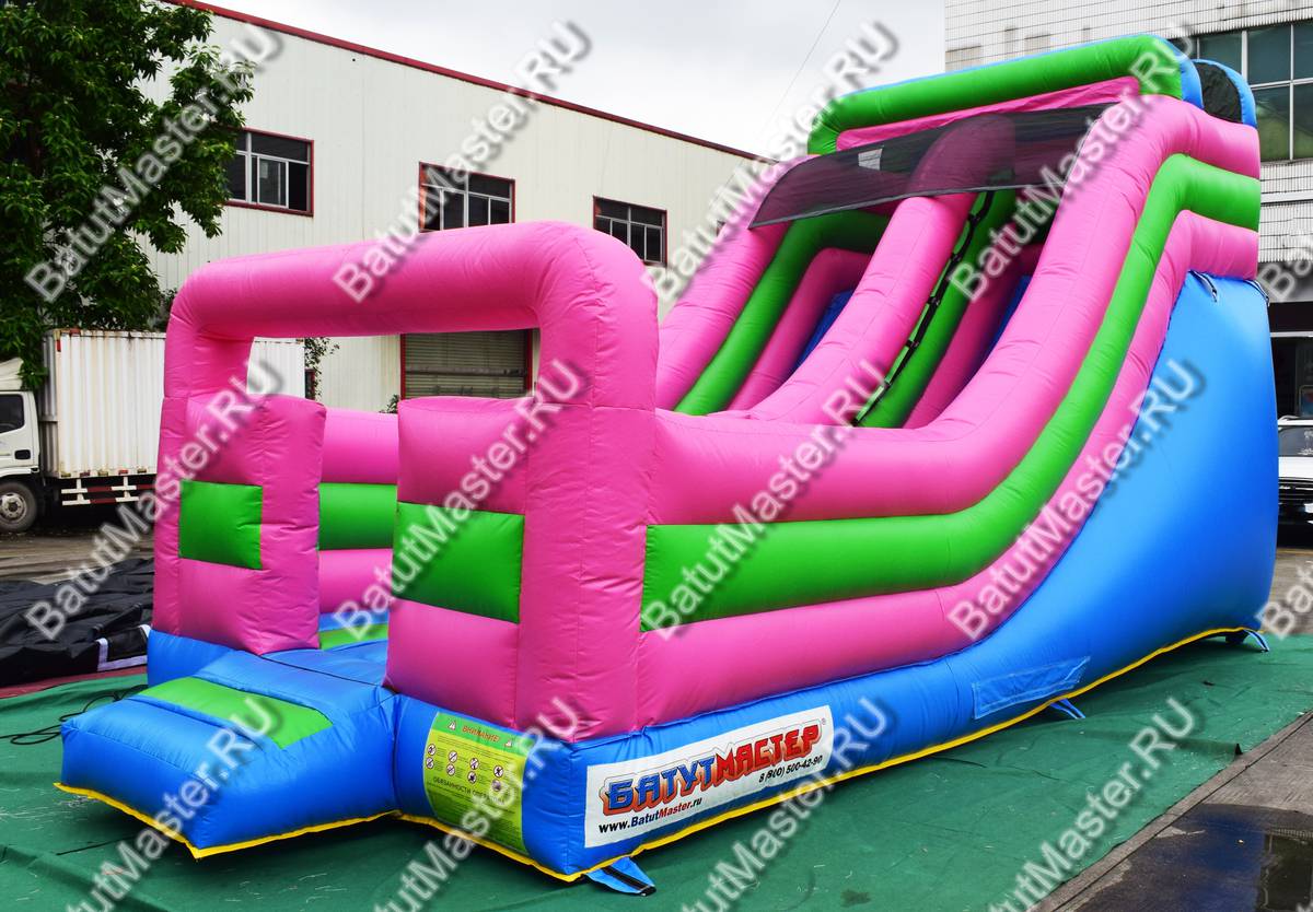 Надувной батут отличается великолепным внешним видом и функциональностью. Яркий розовый цвет сразу привлечет внимание. Это не просто батут, на котором можно прыгать и кувыркаться, это еще высокая надувная горка. Дети просто обожают катиться вниз с ветерком, а потом приложив усилия, подниматься вверх. Присутствие батута всегда дополняет развлекательную программу, так как большую часть времени дети будут прыгать и кататься с горки.