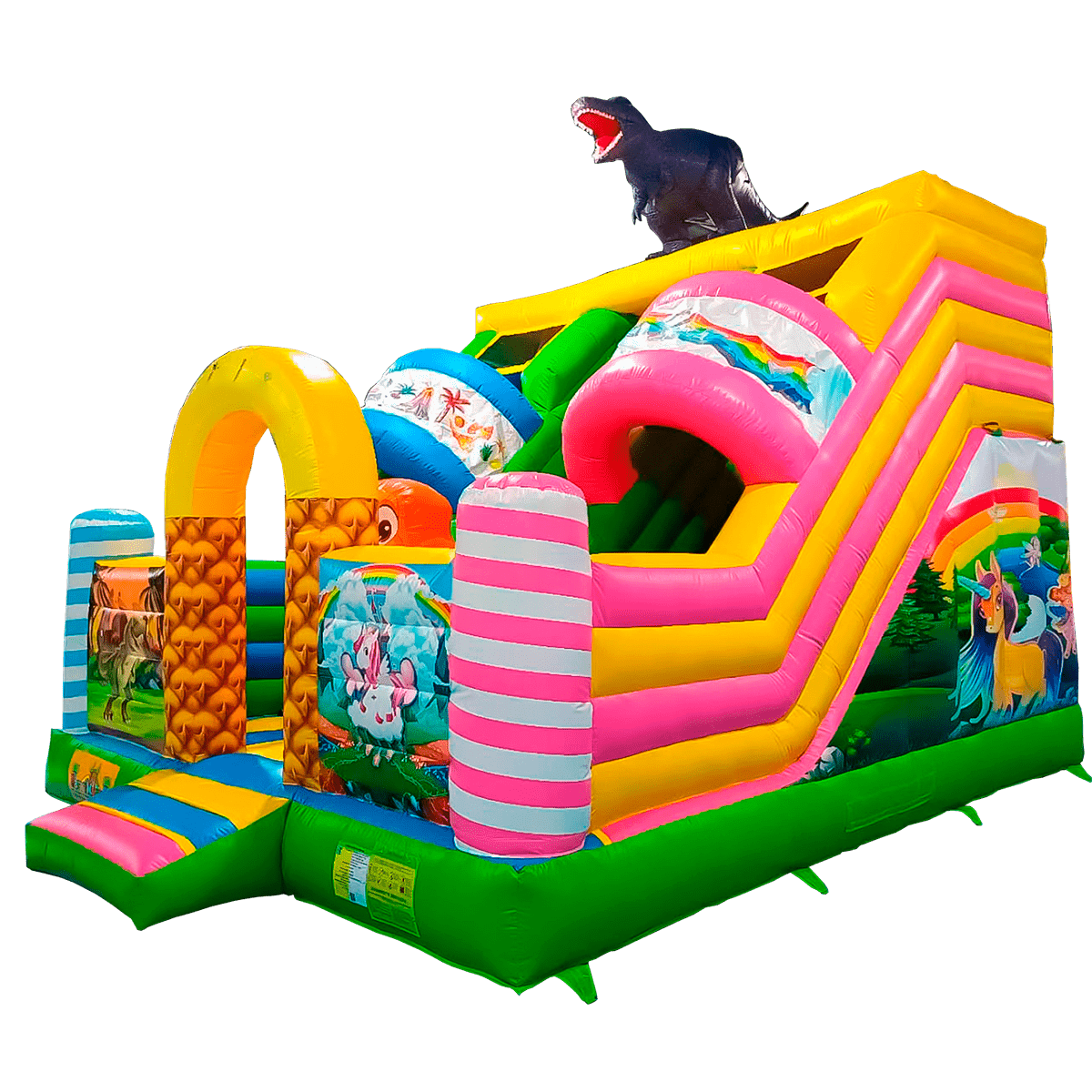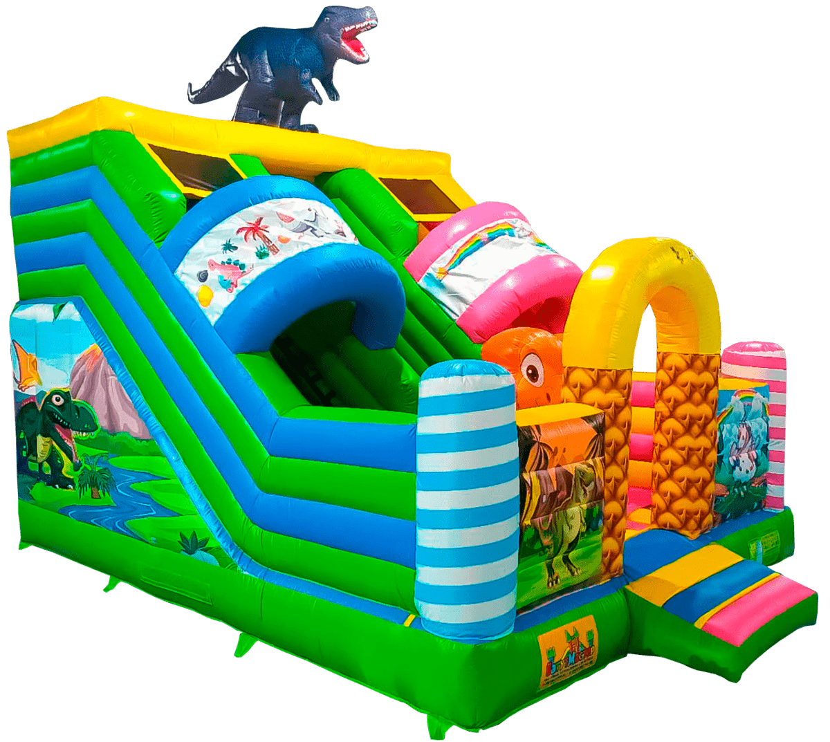 Детский надувной батут-горка «Динолэнд» с прямым скатом 6*5*6 м