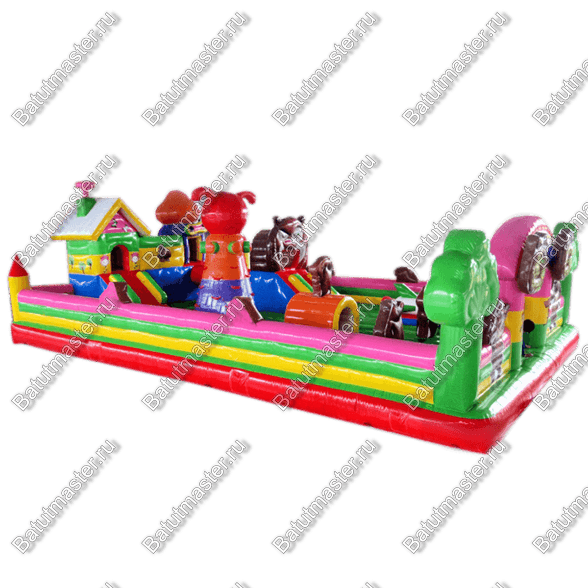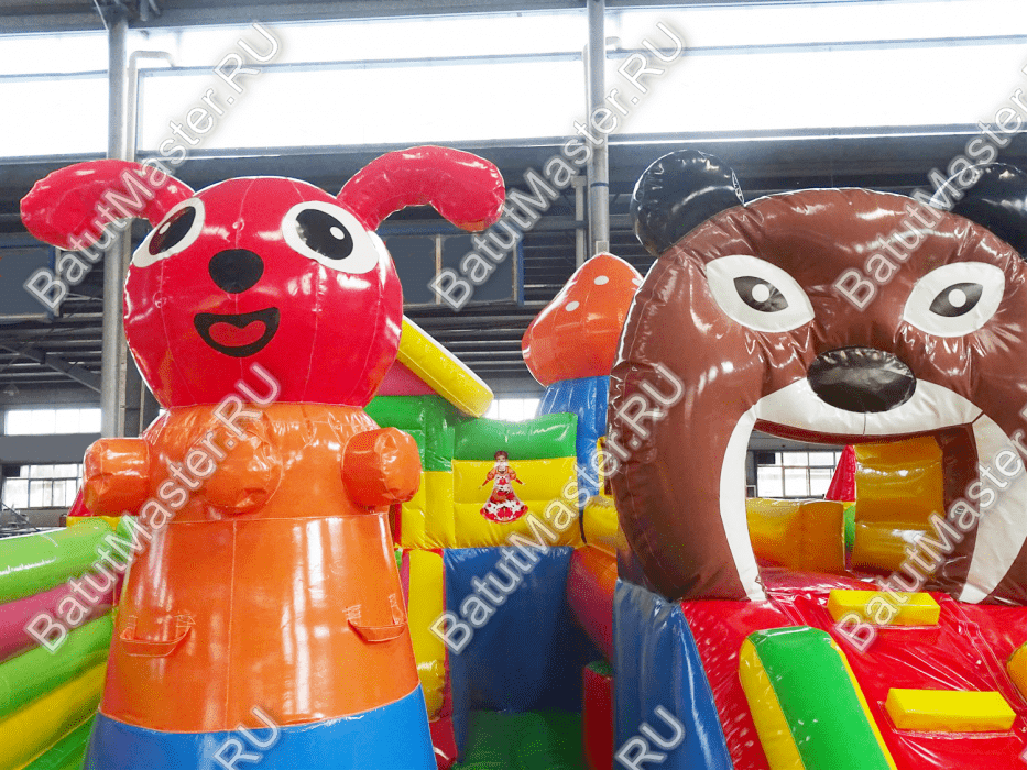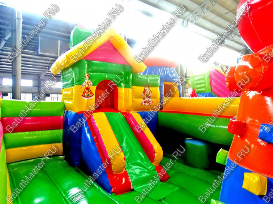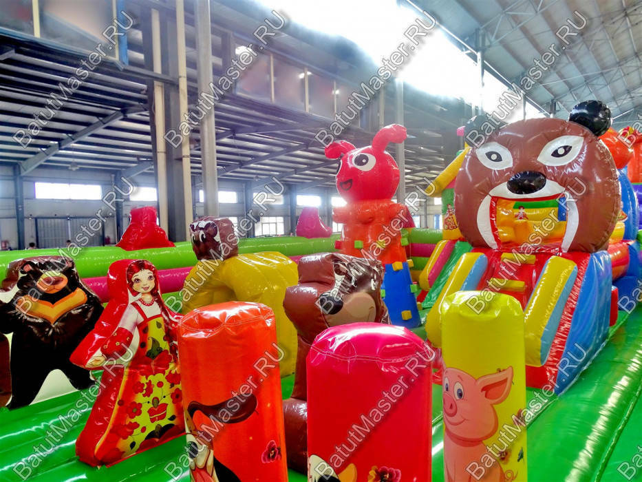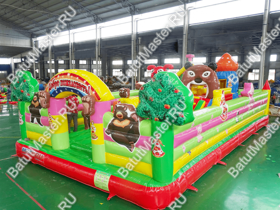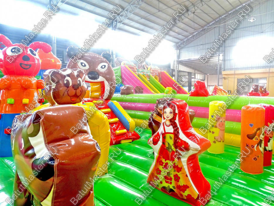 Добро пожаловать в гости к любимым сказочным героям, а именно на большой надувной батут. Здесь дети смогут не только познавательно и весело провести время, но и развить физические навыки. Зайдя на игровую арену малыши сразу обратят внимание на то, как интересно представлены герои доброй сказки. Маша вместе с мишками выглядит реалистично, а тем более, что такие фигуры объемные, их можно потрогать, и даже забраться сверху. Коммерческий аттракцион оснащен горками, скалодромом с забавной фигурой наверху, различными мягкими модулями и т.д. Для бизнеса - такой вариант отлично подойдет.