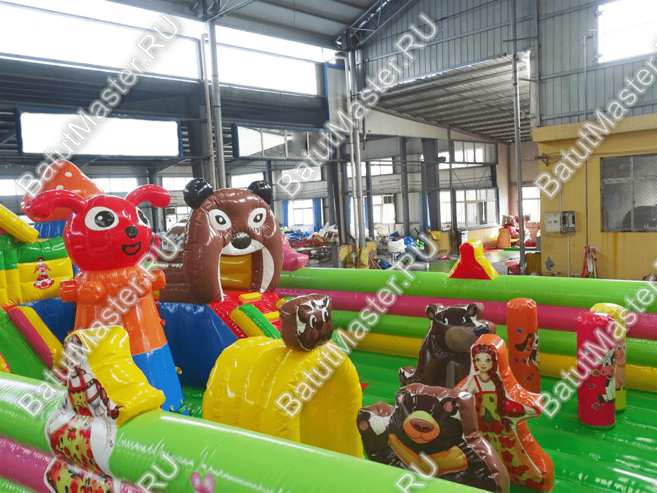 Это так важно в период роста детского организма. Зайдя на игровую арену малыши сразу обратят внимание на то, как интересно представлены герои доброй сказки. Мишка и Маша словно наяву размещены по всей территории прыжкового поля. Фигуры объемные, за счет чего смотрятся очень весело. Аттракцион располагает горками, скалодромом, домиком и многочисленным игровыми атрибутам, которые никогда не дадут заскучать.