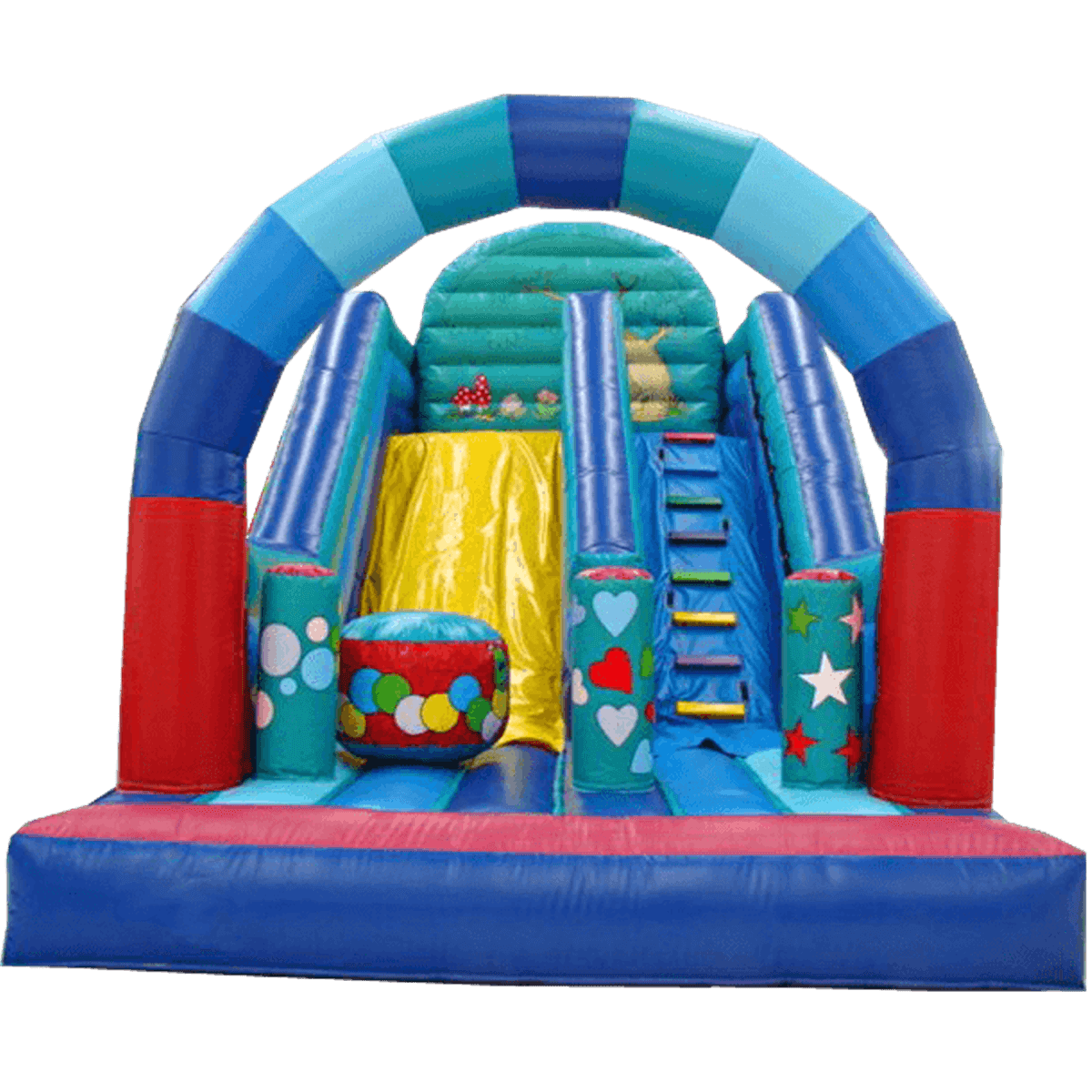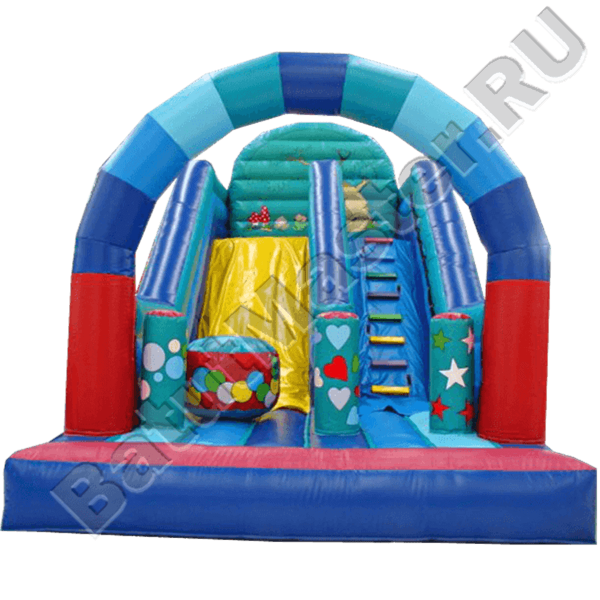Красочный и праздничный батут-горка сочетает в себе площадку для прыжков, оснащённую надувными игровыми элементами и мягкую горку, по которой легко и приятно кататься.