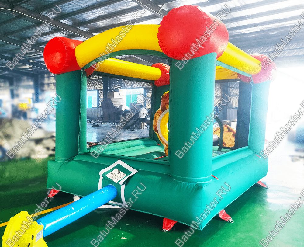 Коммерческий надувной батут для бизнеса сделан из особо прочного и плотного поливинилхлорида. По всему периметру между массивными колоннами натянута прочная сетка. Так, юные непоседы будут всегда за происходящим снаружи и останутся на виду у своих родителей.