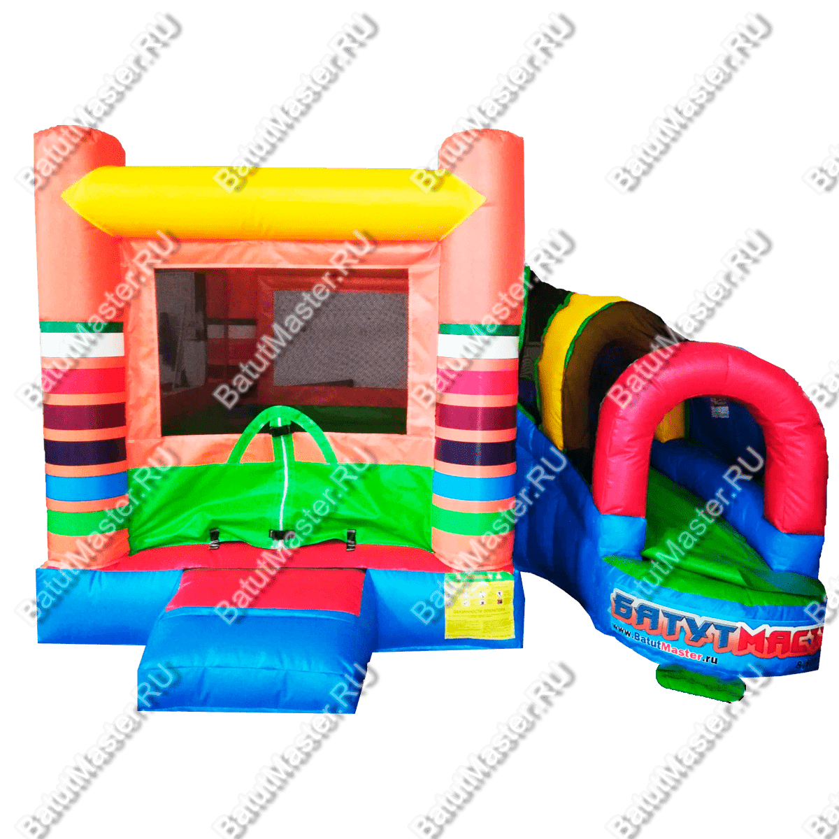 Батут внешне напоминает небольшой квадратный домик, правда, вход у него не совсем обычный. Оказаться внутри можно, пройдя небольшой тоннель, который расположен сбоку от основания. Такой подход вызовет ещё больше интереса, ребята смогут как заползать внутрь, так и выползать.