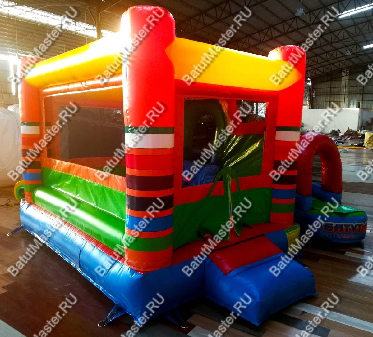 Домик внешне выглядит очень ярко и позитивно, ведь не зря батут носит название «Мир радости». Такие цвета побуждают к действию и активности. Деткам не придётся скучать, ведь они смогут развеселить себя внутри разноцветного домика.