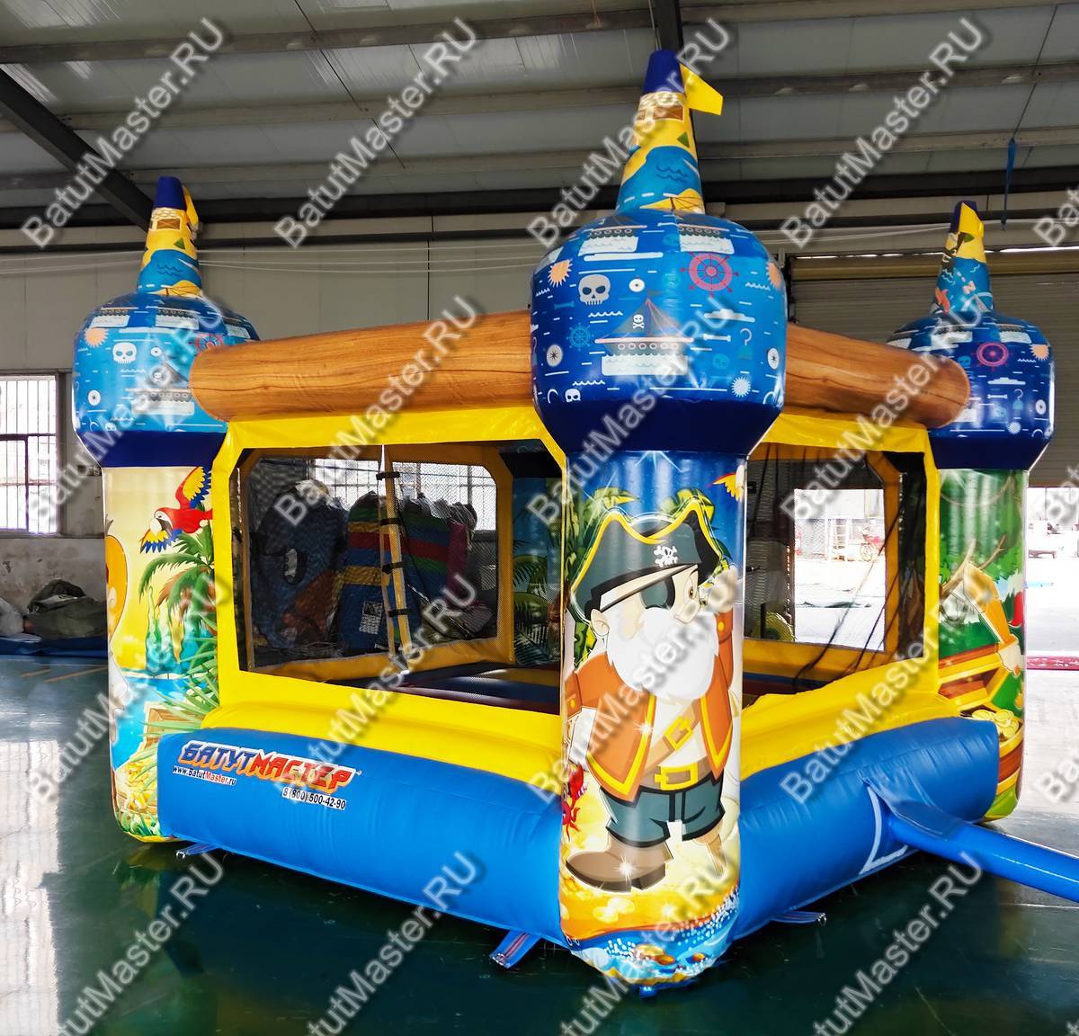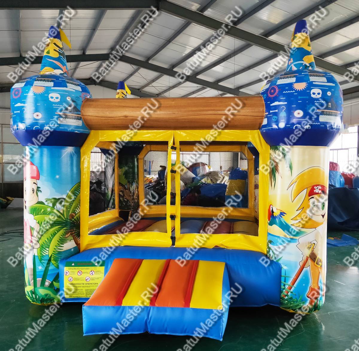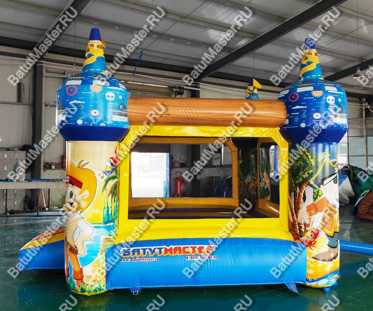 Добро пожаловать на остров пиратов! Небольшой надувной батут доставит детям настоящую радость, ведь в нем можно прыгать так высоко. Он развивает выносливость, силу и координацию движений у детей, что так важно на этапе их развития. Яркий тематический дизайн и изображения в виде юных пиратов делают комплекс еще интереснее и привлекательнее. Резвиться в нем могут дети разного возраста. Батут отвечает всем требованиям безопасности. Со всех сторон он окружен прочной сеткой и спереди на входе имеется замок, чтобы дети не выпали с игровой зоны наружу. Коммерческий батут простой и неприхотливый в уходе. Не имеет ни одного жесткого элемента. Изготовлен из специальной нетоксичной ткани ПВХ. Благодаря предварительному ламинированию не выгорает на солнце и не сжимается при низкой температуре. Может быть установлен на открытом воздухе или в помещении. Рассчитан для бизнеса. Не занимает много места, полностью мобилен, легко собирается и разбирается. В комплекте имеется необходимое оборудование для установки и эксплуатации, включая мощный насос. Его можно сдавать в аренду или установить в развлекательном центре, гостинице, магазине и даже на пляже прямо на песке.