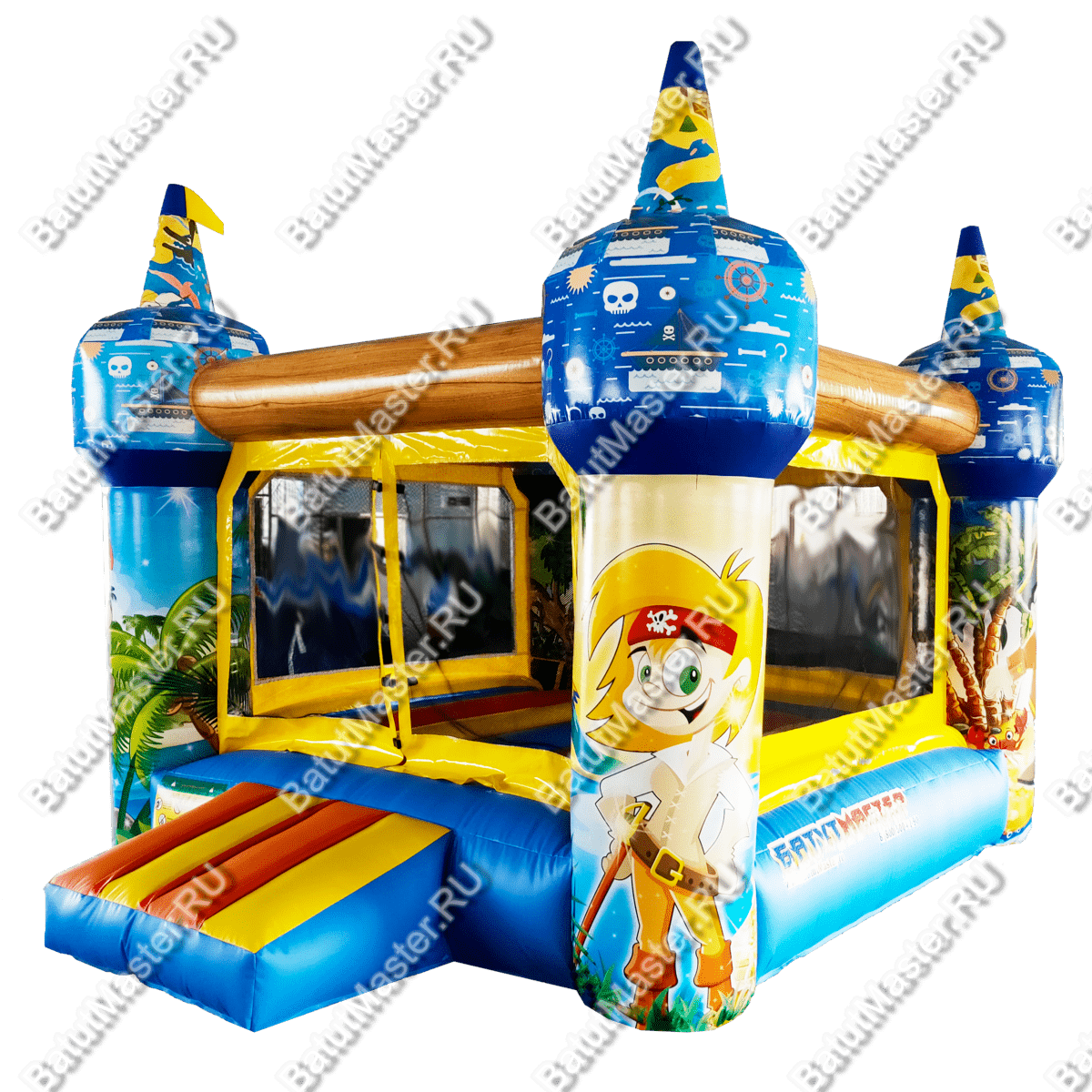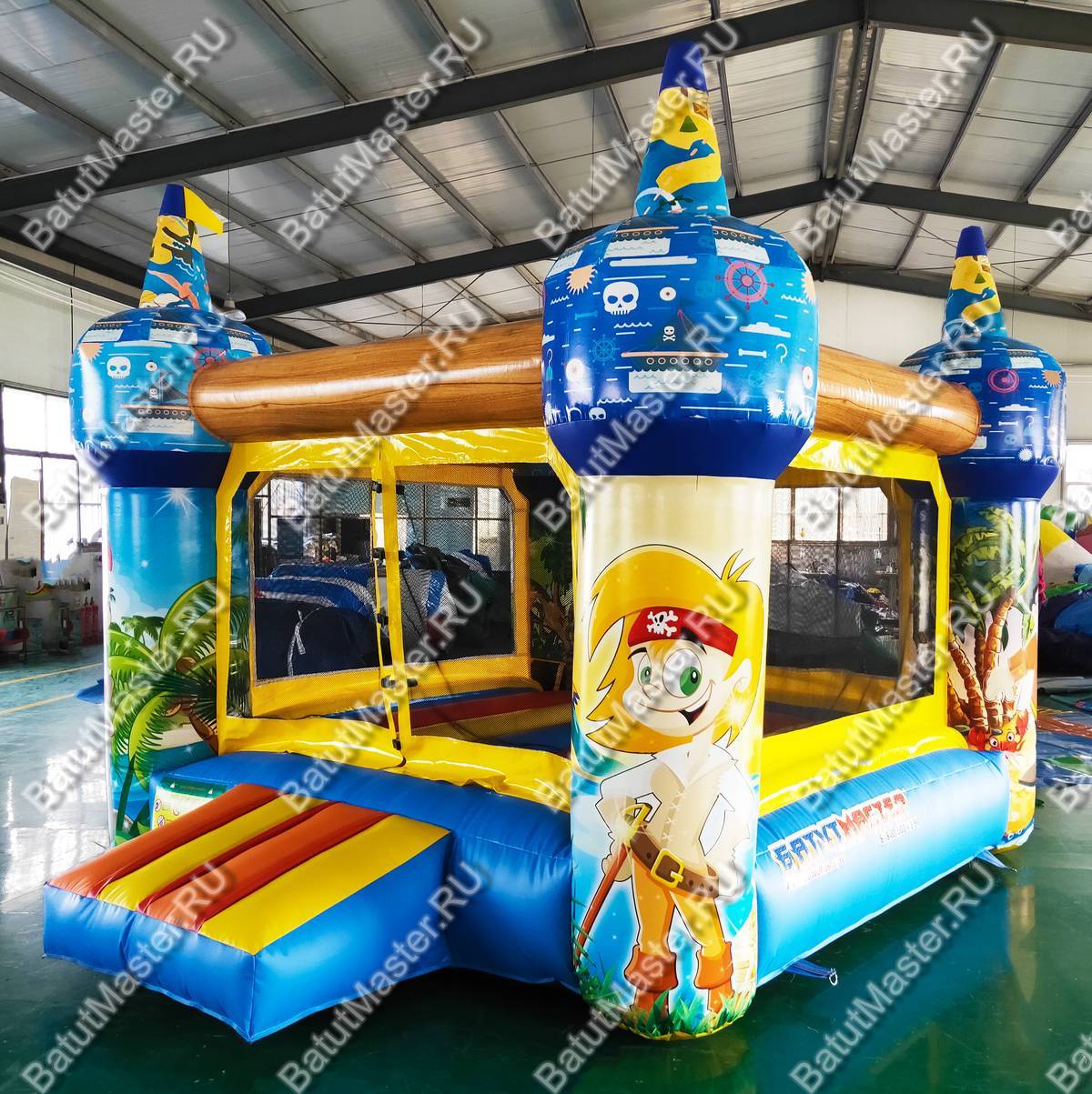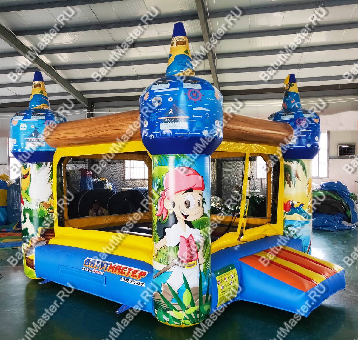 Добро пожаловать на остров пиратов! Небольшой надувной батут доставит детям настоящую радость, ведь в нем можно прыгать так высоко. Он развивает выносливость, силу и координацию движений у детей, что так важно на этапе их развития. Яркий тематический дизайн и изображения в виде юных пиратов делают комплекс еще интереснее и привлекательнее. Резвиться в нем могут дети разного возраста. Батут отвечает всем требованиям безопасности. Со всех сторон он окружен прочной сеткой и спереди на входе имеется замок, чтобы дети не выпали с игровой зоны наружу. Коммерческий батут простой и неприхотливый в уходе. Не имеет ни одного жесткого элемента. Изготовлен из специальной нетоксичной ткани ПВХ. Благодаря предварительному ламинированию не выгорает на солнце и не сжимается при низкой температуре. Может быть установлен на открытом воздухе или в помещении. Рассчитан для бизнеса. Не занимает много места, полностью мобилен, легко собирается и разбирается. В комплекте имеется необходимое оборудование для установки и эксплуатации, включая мощный насос. Его можно сдавать в аренду или установить в развлекательном центре, гостинице, магазине и даже на пляже прямо на песке.