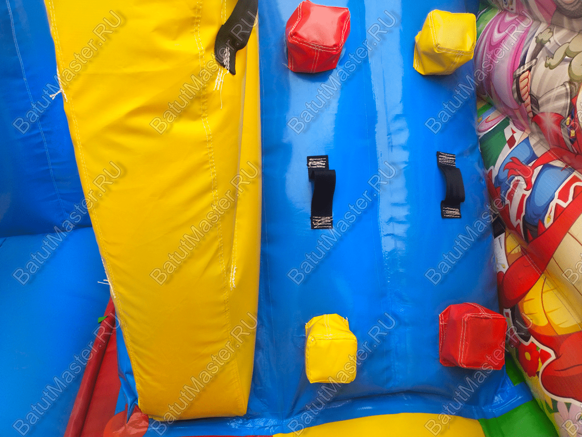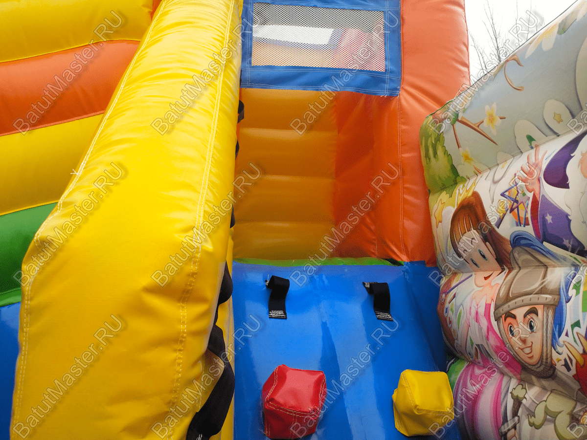 Материал изготовления батута – поливинилхлорид. Прочный нетканый ПВХ не выцветает на солнце, устойчив к низким температурам. Может использоваться при температуре от -15 до + 60, что дает возможность устанавливать детский надувной батут «Русский цирк» как в помещении, так и на улице.