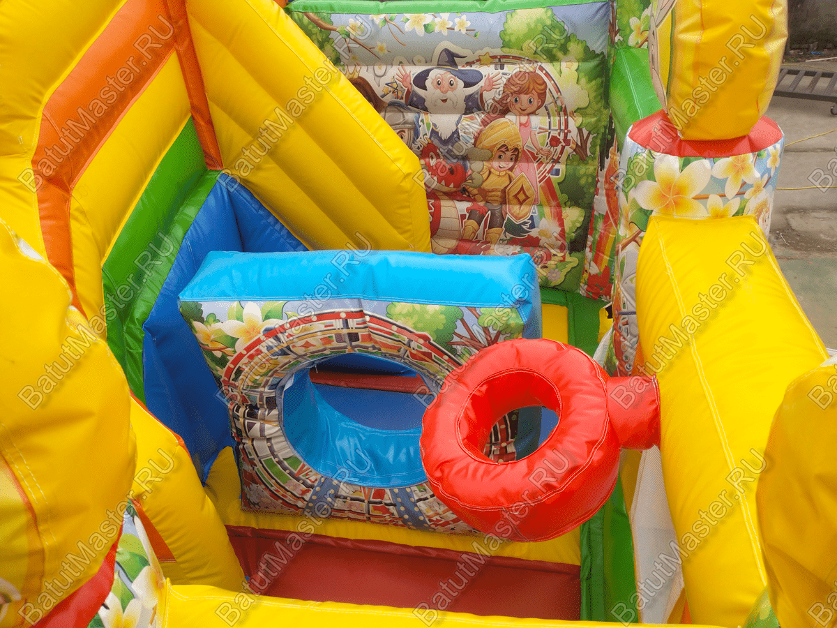 Внутри есть достаточно пространства для активности. Окна, оснащенные сеткой безопасности, дают воздуху свободно циркулировать в аттракционе и предоставляют взрослым обзор на происходящее внутри.