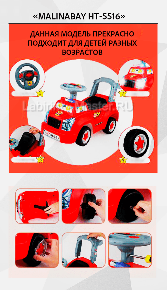 🛒 Детский толокар/каталка "MalinaBay НТ-5516" белый купить за 0.0 ₽ | 🚚 Оплата при получении!