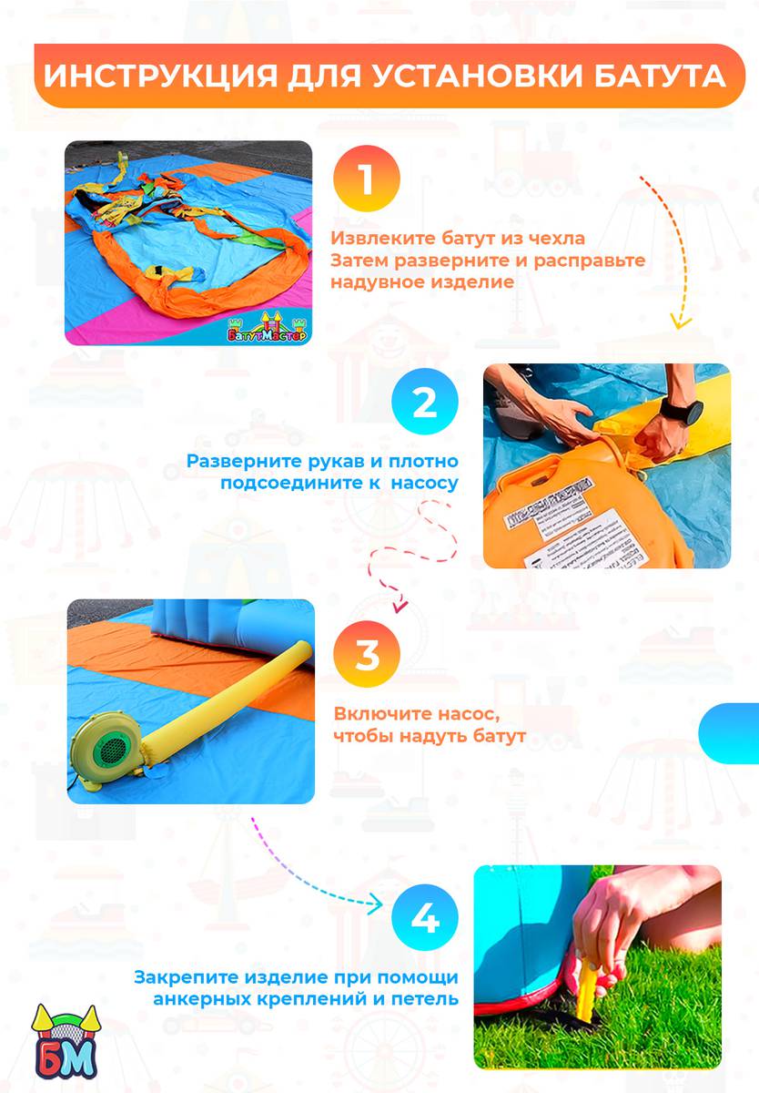 Чтобы начать использовать батут, нужно выполнить несколько простых шагов: